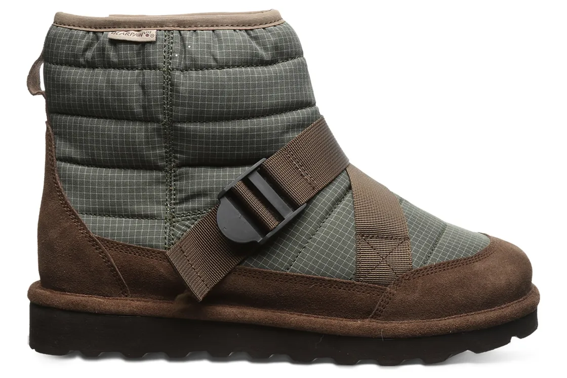 Bearpaw Connor is a stylish winter boot. Prominent features include a suede and ballistic nylon upper, comfort sheepskin footbed and blown rubber outsole. A wool blend lining, round toe, 6-inch shaft height and 1-inch heel height elevates these trendy men’s boots.