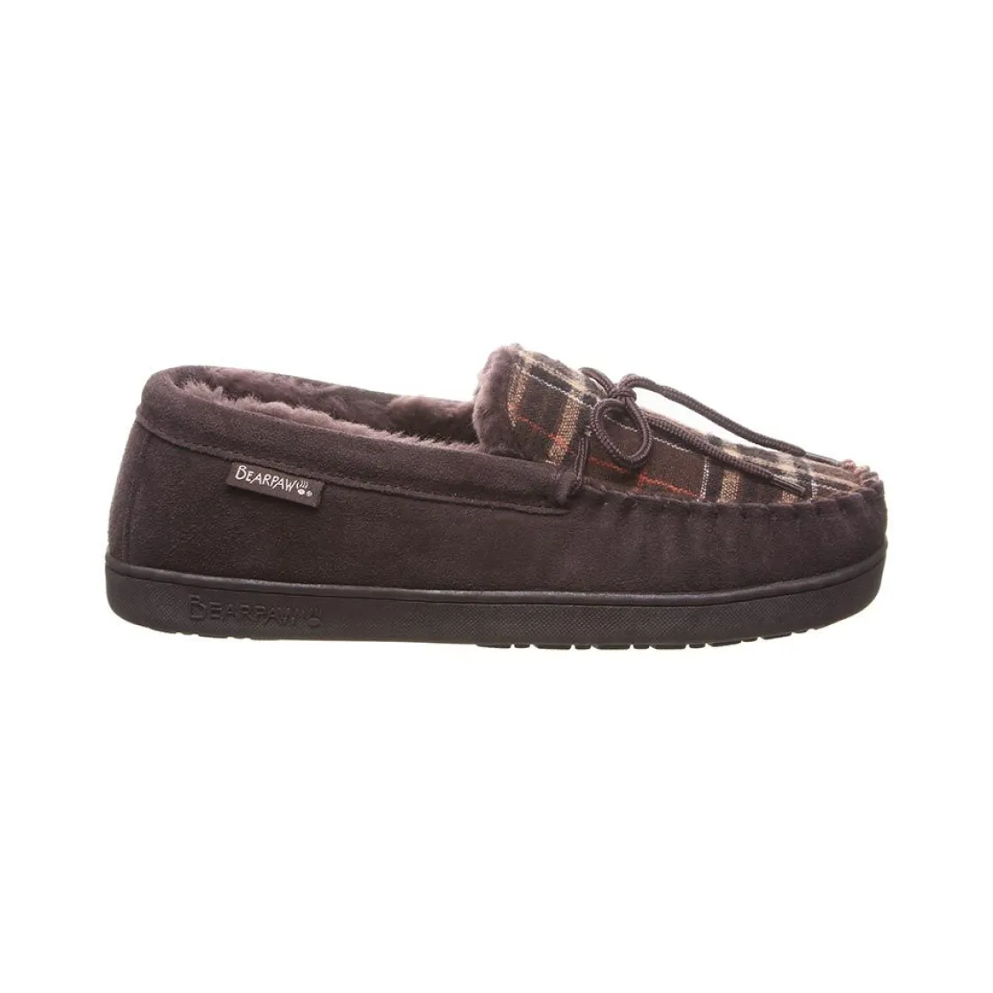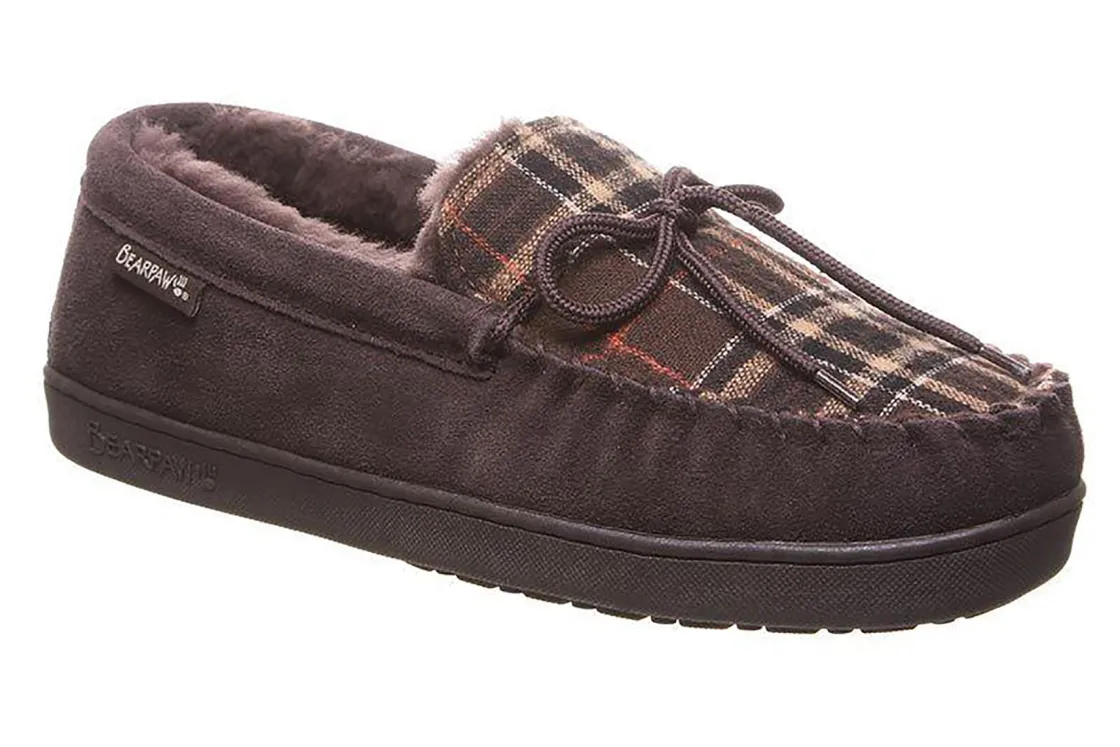 Bearpaw Moc II is a cozy and comfortable cold weather slipper. Suede and wool upper, sheepskin lining and footbed and TPR rubber outsole makes these a favorite. A foam midsole adds superior comfort, while a hand-stitched vamp with lace detail provides elegance and support.