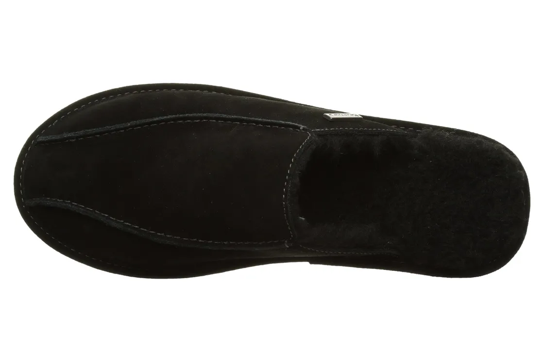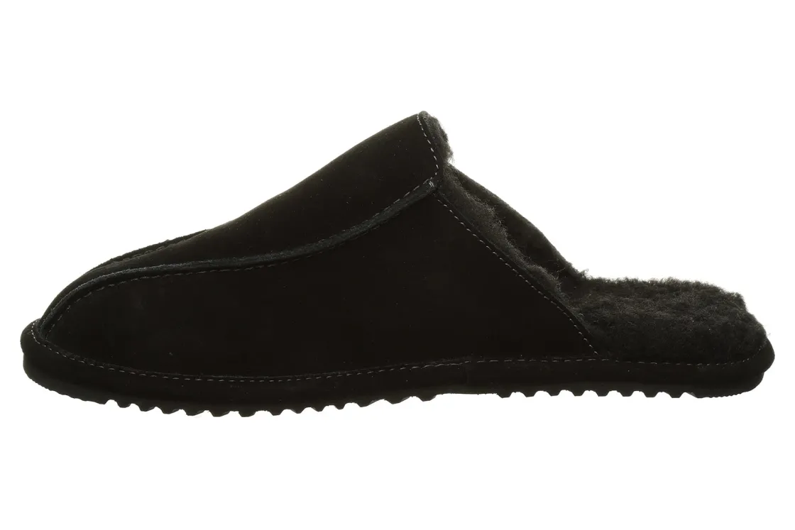 Bearpaw Pierre is a cozy slipper for cold weather days. Features include suede uppers, wool blend lining and footbed and a durable EVA midsole and outsole. These house slides also have vamp seam details and NeverWet® technology treatment to keep feet dry.