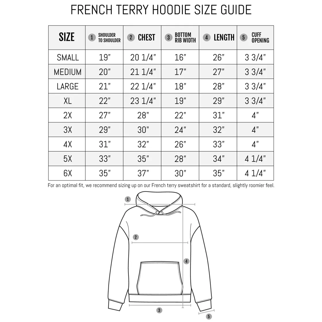 95% Cotton – 5% Spandex Ribbed cuffs and hem