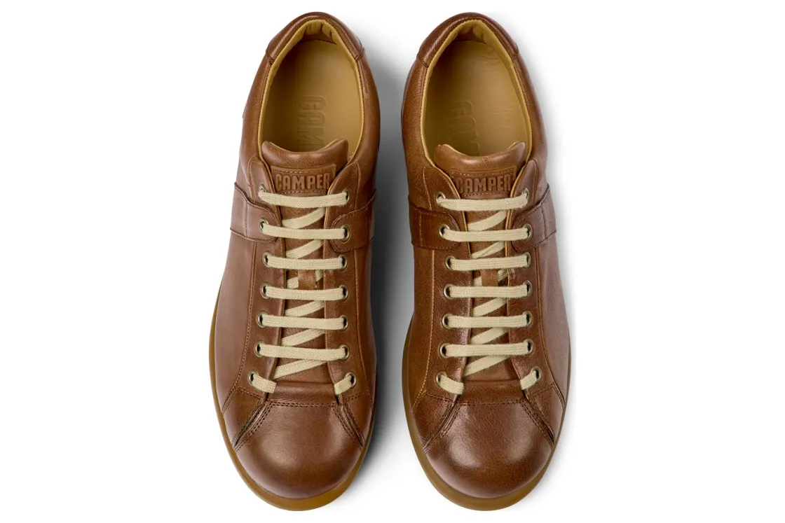 Shoe for men. Full grain leather with rubber outsole. Our Pelotas men’s shoes are our most iconic Camper style. With an unmistakable, sport-inspired outsole comprised of 87 spheres, our Pelotas – Spanish for “balls” – continues to change the game each season while always staying true to its roots.