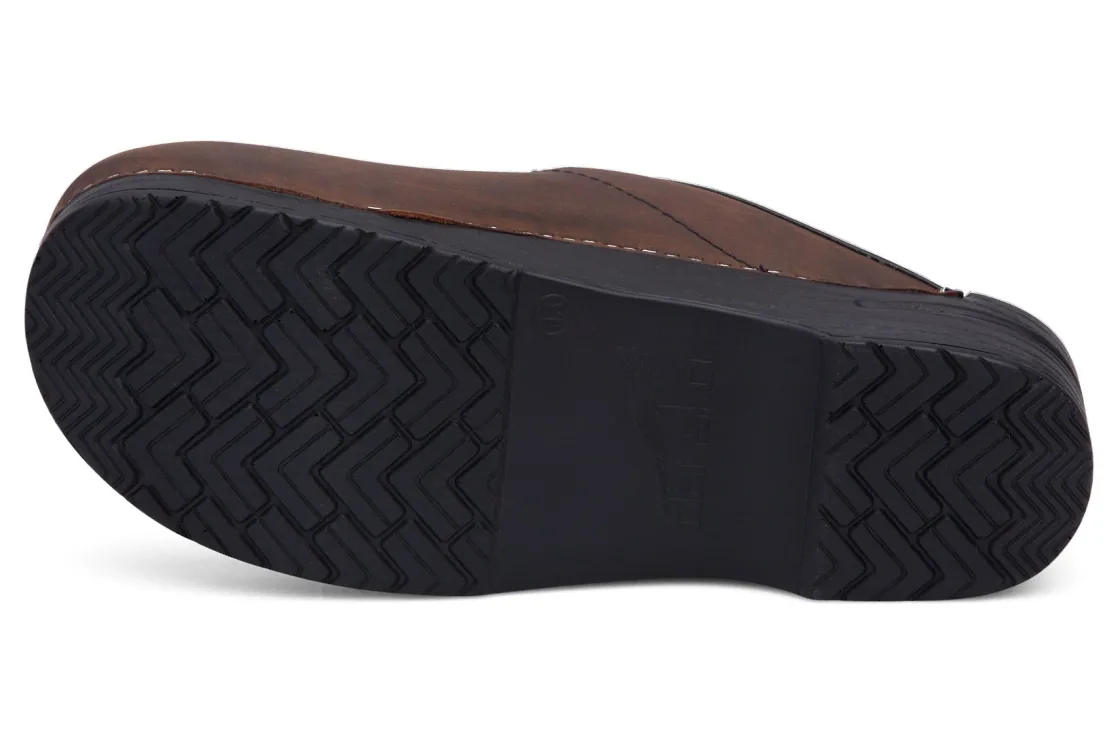 Dansko’s most popular open-heel model for men, the Karl is perfect for professionals who spend all day on their feet. This style features a padded instep and is suitable for medium to wide feet and low to medium-high insteps.Recommended support for plantar fasciitis.Traditional open-back style.High-quality leather upper follows the natural contours of the foot.Oiled leather has a heavily oiled finish that creates a durable, moisture-resistant surface.Nonallergenic leather socklining.Roomy, thermoplastic toe box provides durable reinforcement and toe protection while allowing toes to move comfortably.Non-allergenic, vegetable-tanned leather sockliner wrapped around synthetic foam absorbs and evaporates perspiration.Rocker bottom propels the foot forward when walking.Slip-resistant approval given by SATRA, the world’s leading research and technology organization for the footwear industry.Dansko’s Stapled Clog Collection proudly carries the Seal of Acceptance from the American Podiatric Medical Association.250-780202
