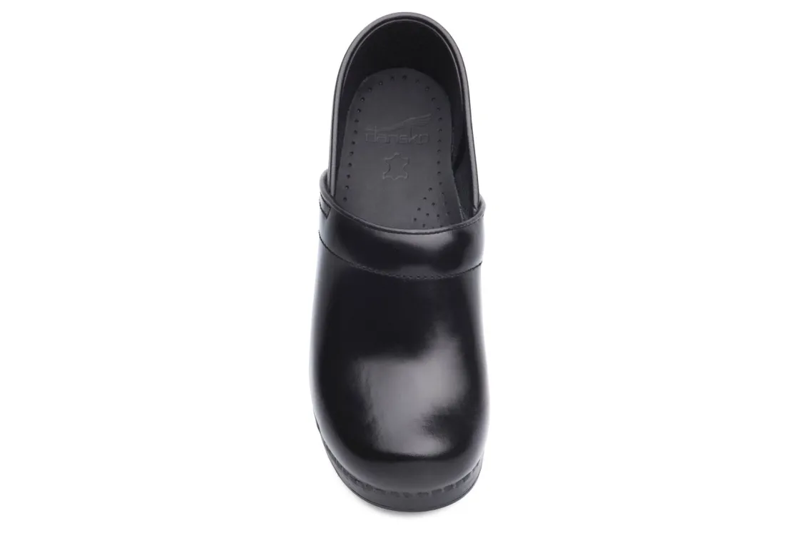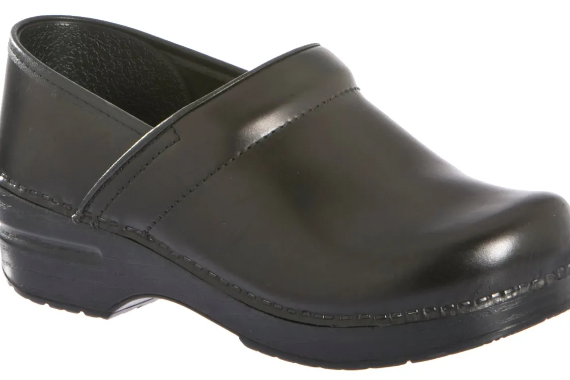 The Dansko Professional clog is Dansko’s iconic silhouette, their flagship style. It features a roomy reinforced toe box for protection and comfort. The contoured footbed adds support to the comfort features like a padded instep collar to feel good with virtually any foot. We set ourselves apart with a protective heel counter that allows the heel to move up and down freely while providing lateral stability, and the anti-fatigue rocker bottom, which is built to keep you moving forward.UPPER: Various high-quality leathers. Padded instep collar.TOE BOX: Roomy, reinforced toe box allows toes to move comfortably with plenty of “wiggle room.”HEEL COUNTER: Allows heel to move up and down freely while providing lateral stability.SOCKLINING: Leather for breathability.FOOTBED: Single-density open-cell PU foam.INNER FRAME: Provides added stability throughout.OUTSOLE: PU rocker bottom promotes forward motion for shock absorption and energy return. Wide heel strike assists with stability.