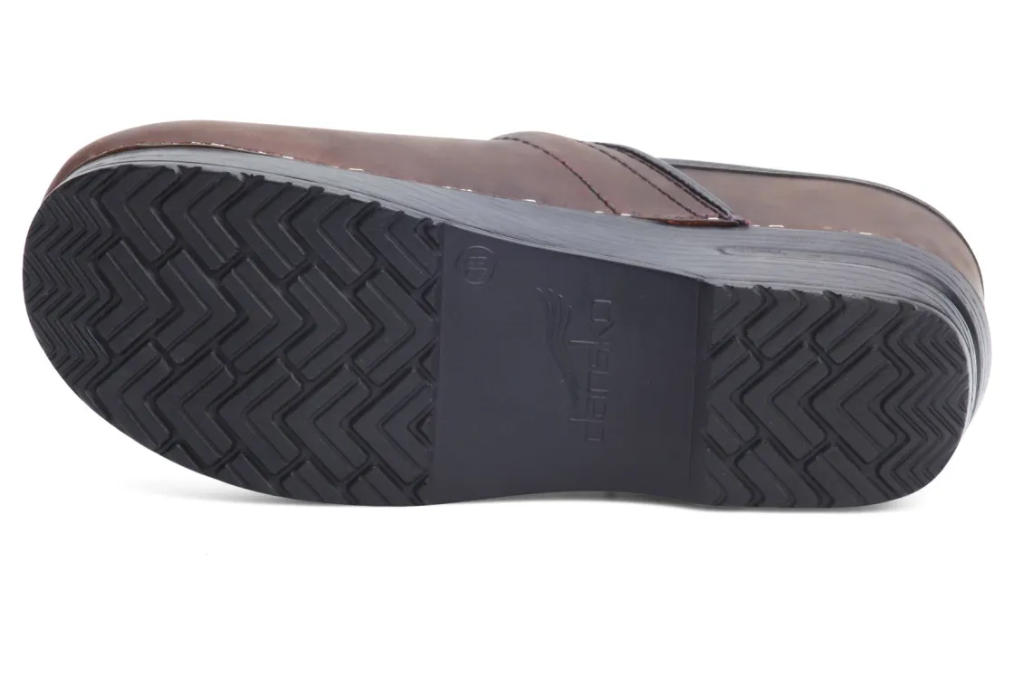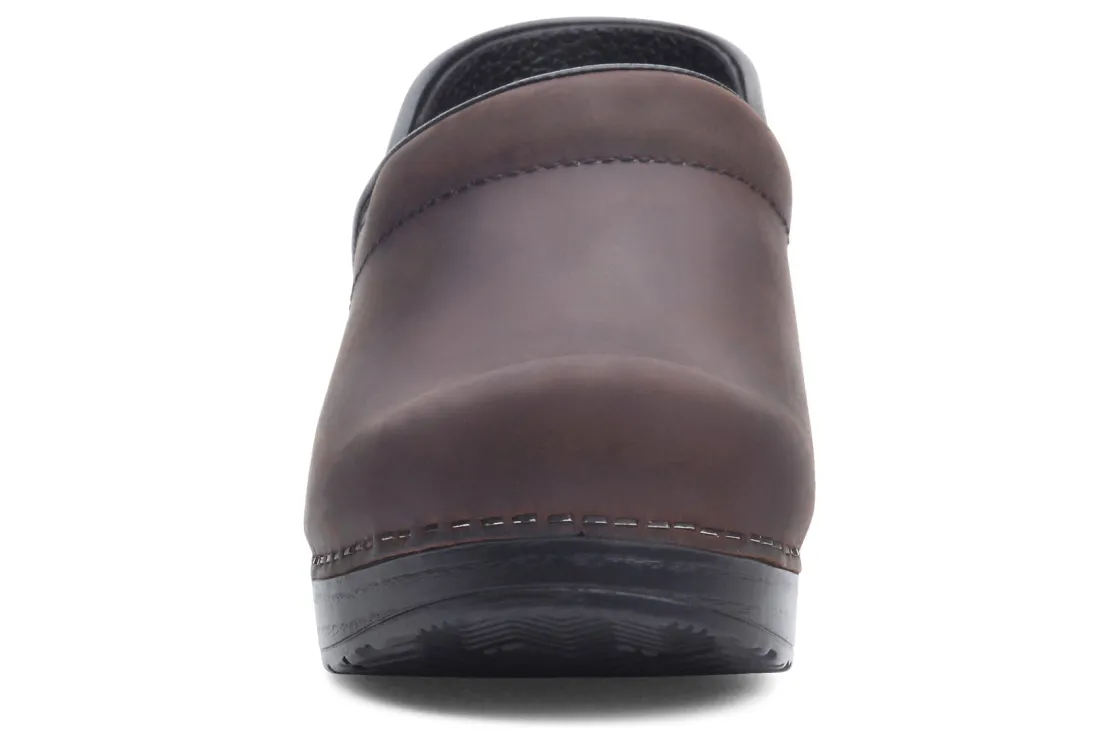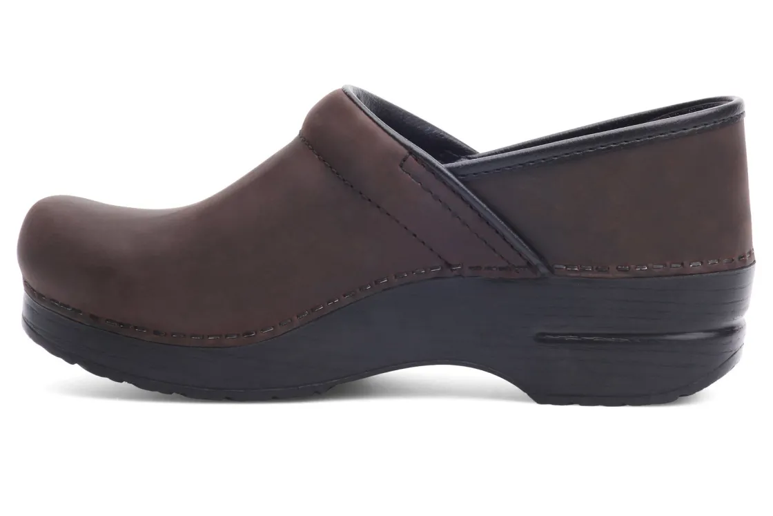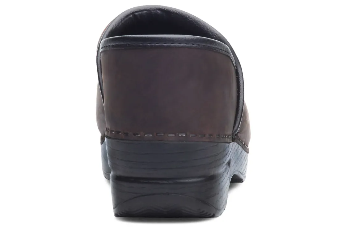 The Dansko Professional clog is Dansko’s iconic silhouette, their flagship style. It features a roomy reinforced toe box for protection and comfort. The contoured footbed adds support to the comfort features like a padded instep collar to feel good with virtually any foot. We set ourselves apart with a protective heel counter that allows the heel to move up and down freely while providing lateral stability, and the anti-fatigue rocker bottom, which is built to keep you moving forward.UPPER: Various high-quality leathers. Padded instep collar.TOE BOX: Roomy, reinforced toe box allows toes to move comfortably with plenty of “wiggle room.”HEEL COUNTER: Allows heel to move up and down freely while providing lateral stability.SOCKLINING: Leather for breathability.FOOTBED: Single-density open-cell PU foam.INNER FRAME: Provides added stability throughout.OUTSOLE: PU rocker bottom promotes forward motion for shock absorption and energy return. Wide heel strike assists with stability.