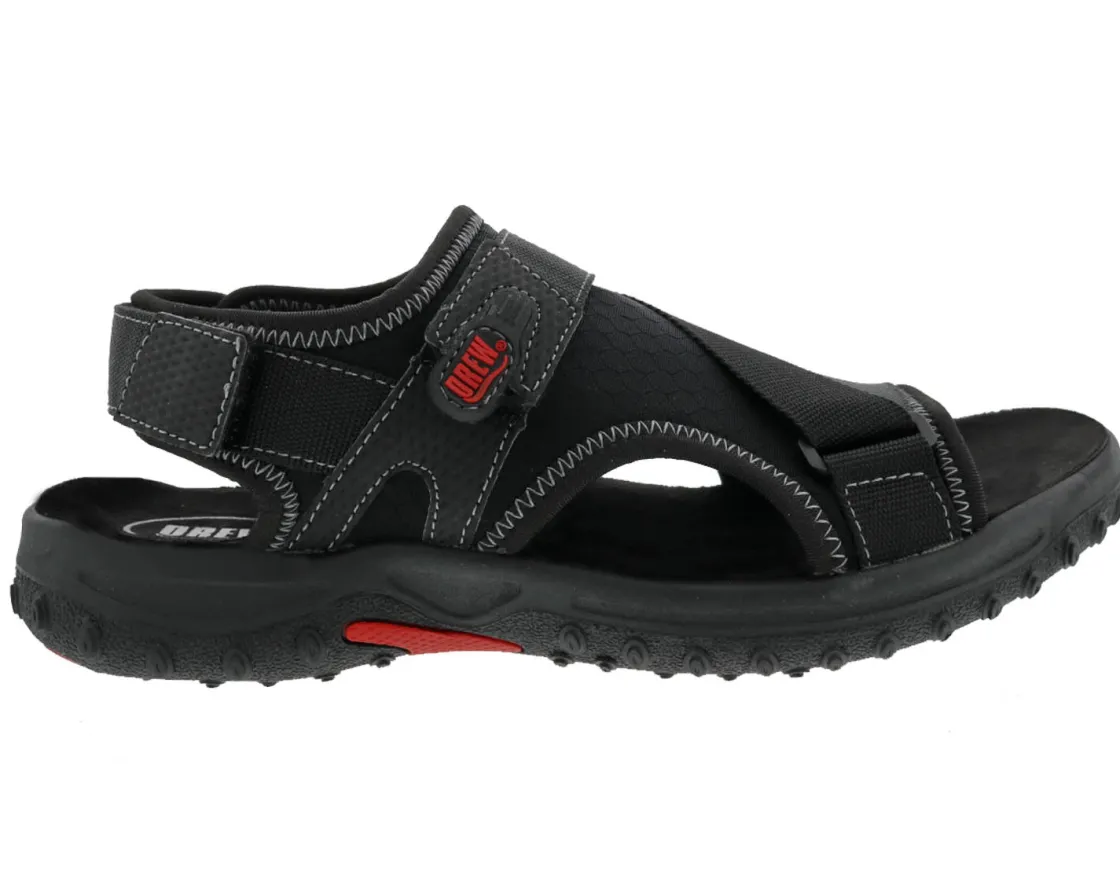 The Drew® mens Wander sandal offers the comfort provided by a removable, cushioned WalkRight Technology footbed and the added support of a flexible, shock-absorbing rubber outsole. A stretch, adjustable, criss cross strap lends to its customizability. The footbed is removable making the Drew Wander one of the industries only double depth sandal- ready for custom orthotic, while soft, stretchable uppers and a natural, oblique toe shape make the Wander one of our most innovative sandals.
