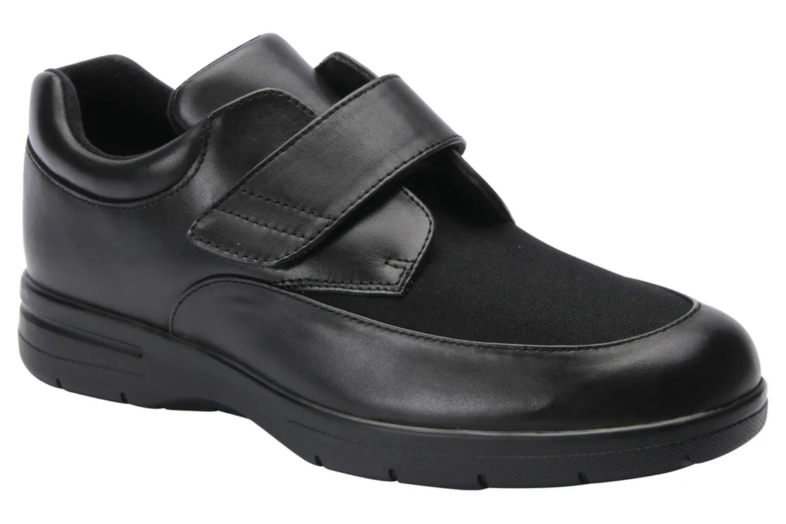 Drew Shoes Journey II is a sturdy and easy to wear men’s shoe. Features include leather and stretch fabric uppers, padded tongue and collar and rubber outsole. An adjustable hook and loop strap provides support, while a moldable, total contact, dual-density insert adds all-day comfort.