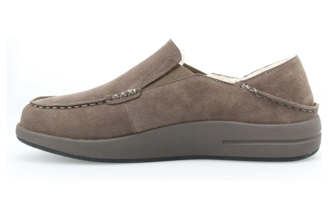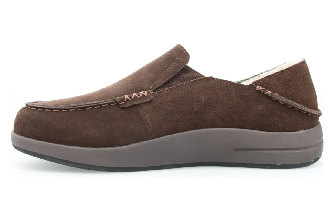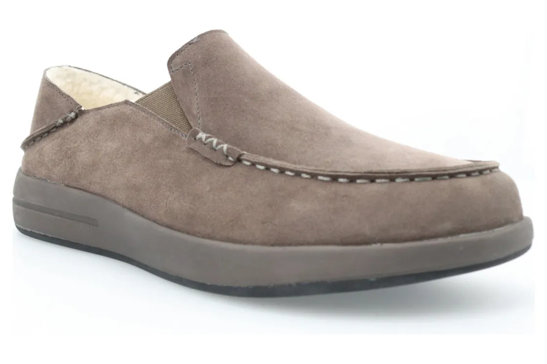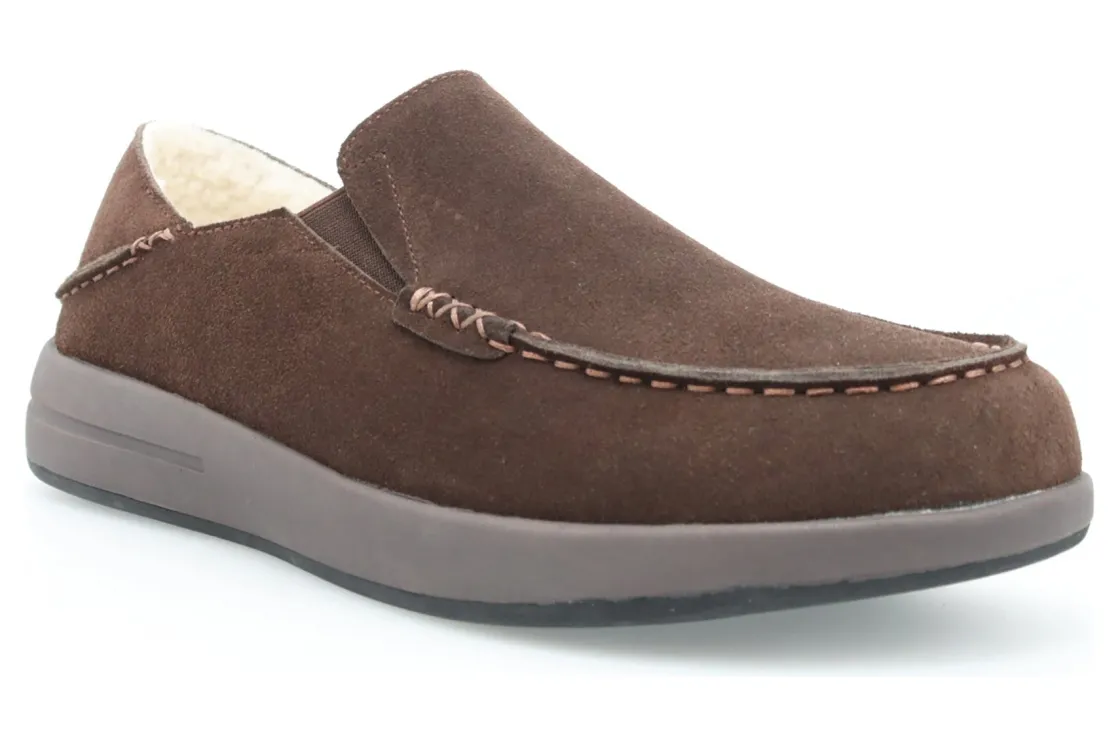 The perfect slipper for slip-on comfort and a rubber outsole for traction on outdoor surfaces Suede upper with fold-down heel counter for slip-on convenience. Faux shearling lining for warmth.