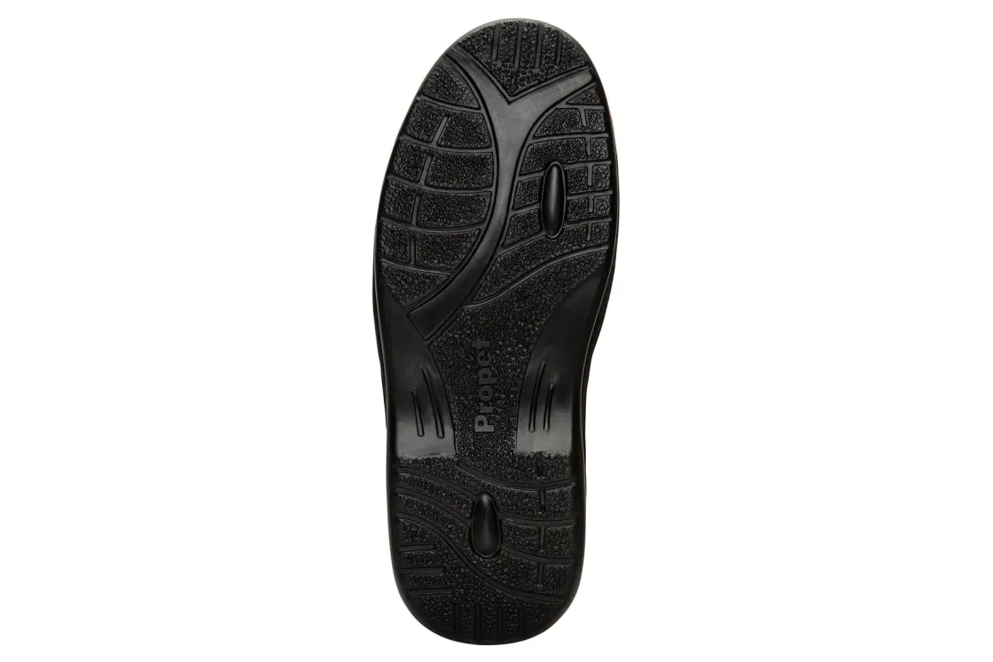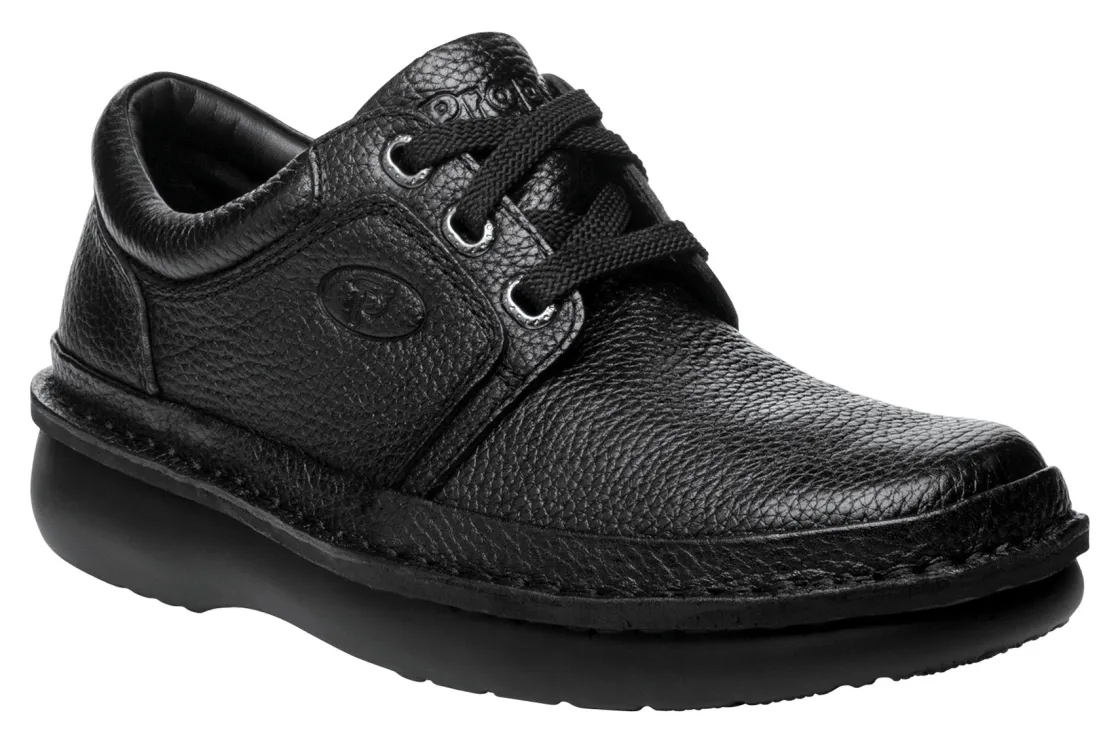 Perfect for everyday wear, the men’s Propet Villager oxford offers versatile styling for the workweek into the weekend. The leather-covered footbed is removable to accommodate custom orthotics for a more personalized fit. The extra volume outsole provides a roomier fit, while the wider heel adds stability.Tumbled leather upper with speed lacing for easy on/off wear.Padded tongue and collar add comfort.Removable, leather-covered footbed accommodates custom orthotics for a personalized fit.Extra volume polyurethane outsole provides durable traction.