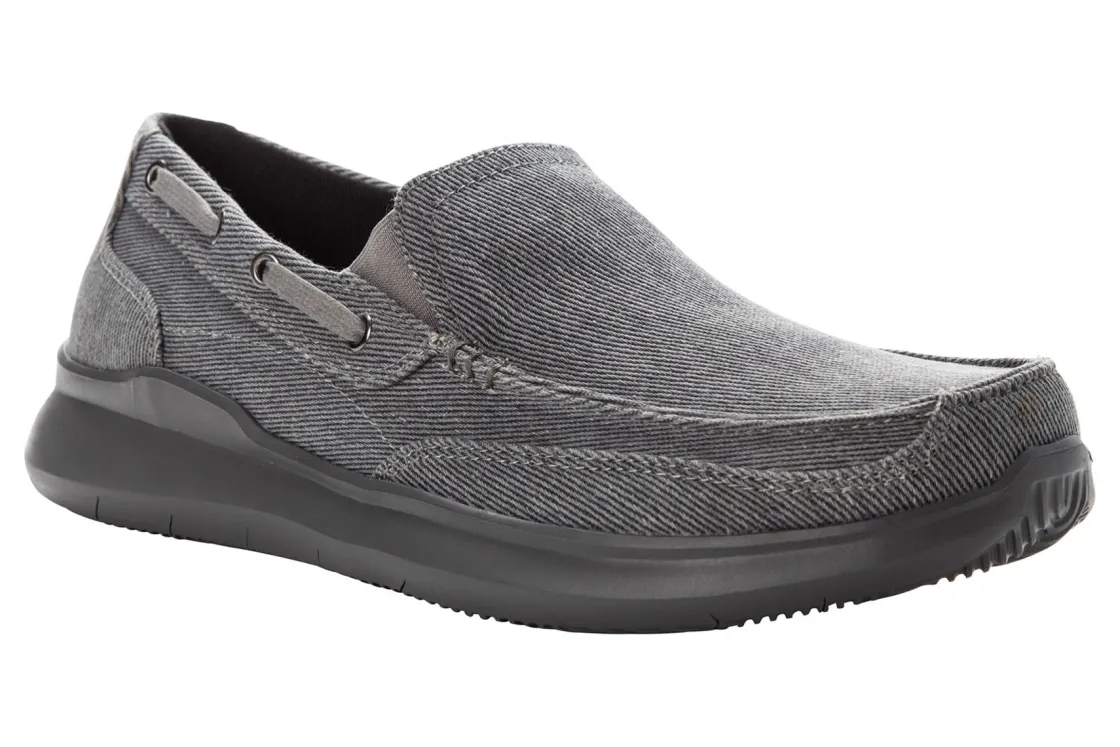 Slide into heel-to-toe comfort in the men’s Propet Viasol. The canvas upper features twin gores to promote flexibility and ensure easy on and off. The cushioned footbed is easily removed to accommodate a custom orthotic, while the durable rubber outsole provides stability and traction. This modern take on a classic boat shoe is perfect for day-to-night wear! Soft canvas upper. Twin gores for flexibility and easy on and off. Includes a cushioned footbed that is easily removed to accommodate a custom orthotic. Durable rubber outsole provides stability and traction.