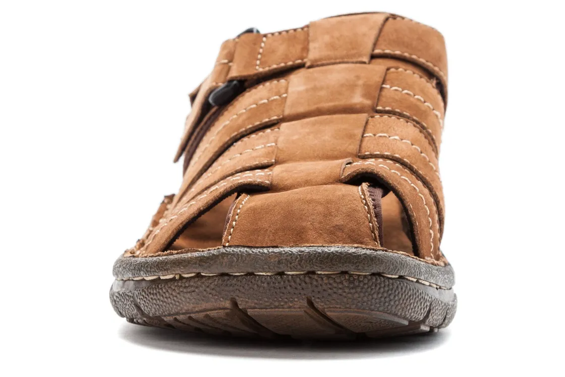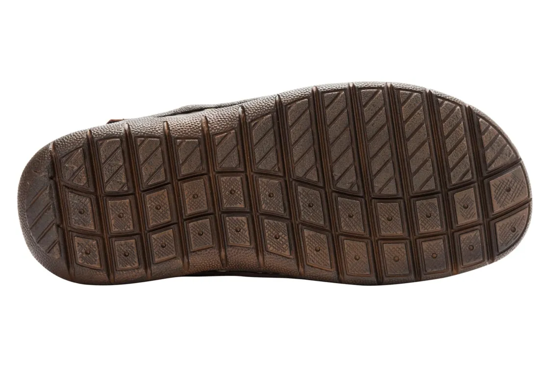 Propet Joseph is a stylish comfort sandal. These fisherman sandals have waxy nubuck leather uppers, removable cushioned footbed and flexible TPR outsole. Adjustable hook and loop closures help to secure feet, while a soft microfiber lining provides added comfort and support.
