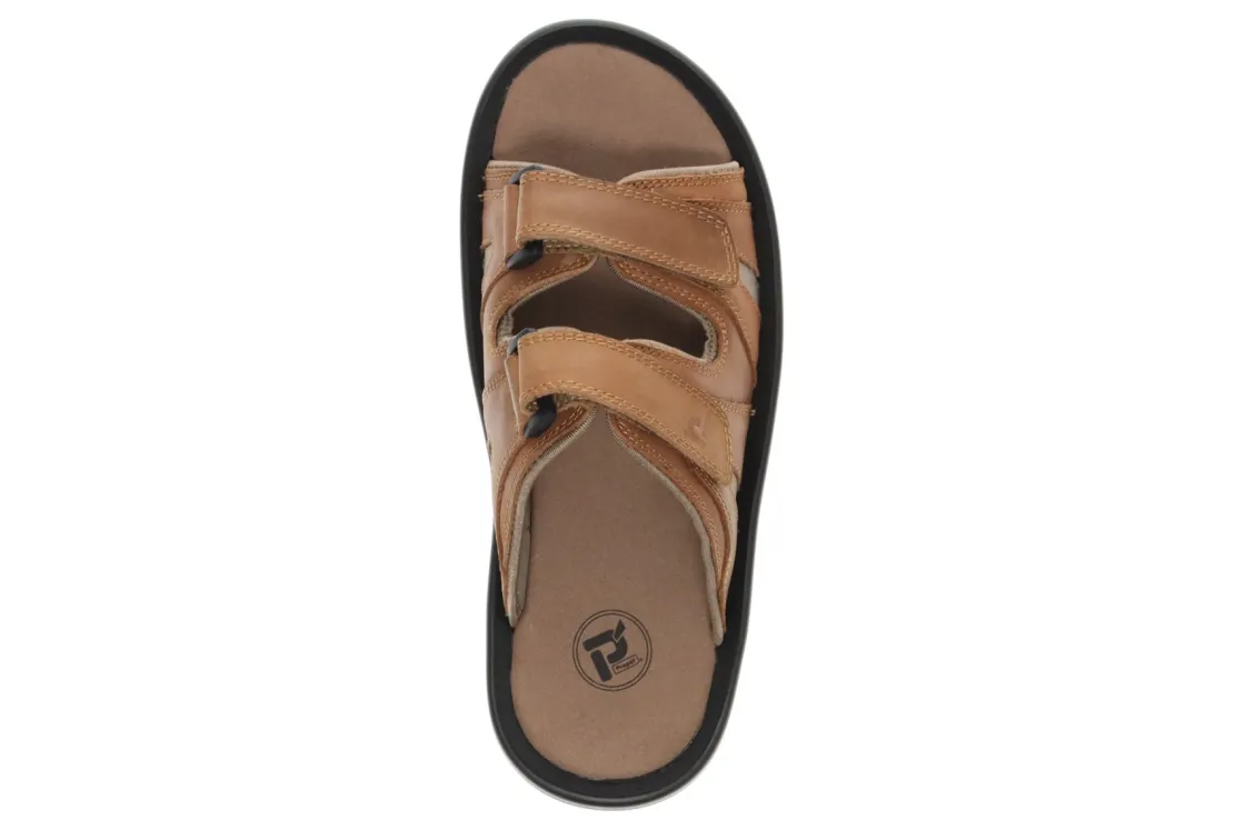 Waxy Nubuck slide sandal with neoprene lining. EVA footbed with microfiber lining. Long lasting PU outsole.
