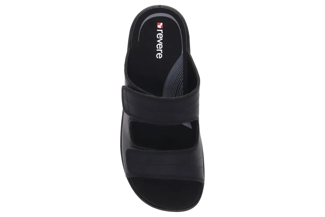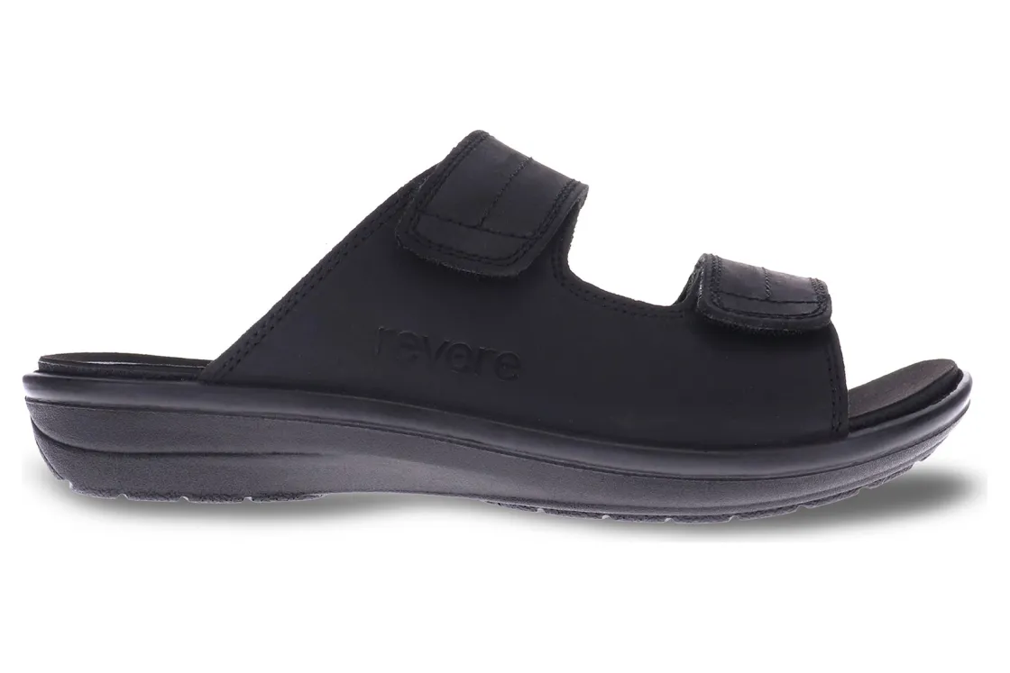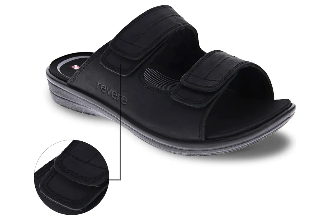Durban’s no-frills is anything but boring. These orthotic-friendly slides are double strapped with premium leather uppers. The subtle stitching lends to a look that’s clean and confident.