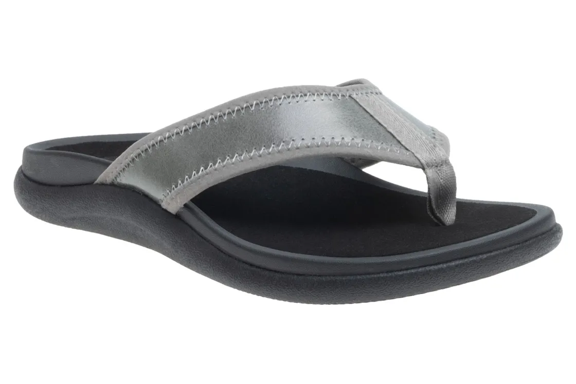 The water-resistant leather upper of the ABEO Laguna Thong Sandal Metatarsal makes it perfect for casual get togethers and outdoor activities. Wear them as beach sandals or as your favorite pair of everyday slip ons. Arch and heel support alleviate pressure on joints and help promote long-term foot health, while an orthotic footbed ensures balanced alignment and all-day comfort. This thong sandal was formerly called Maddie.