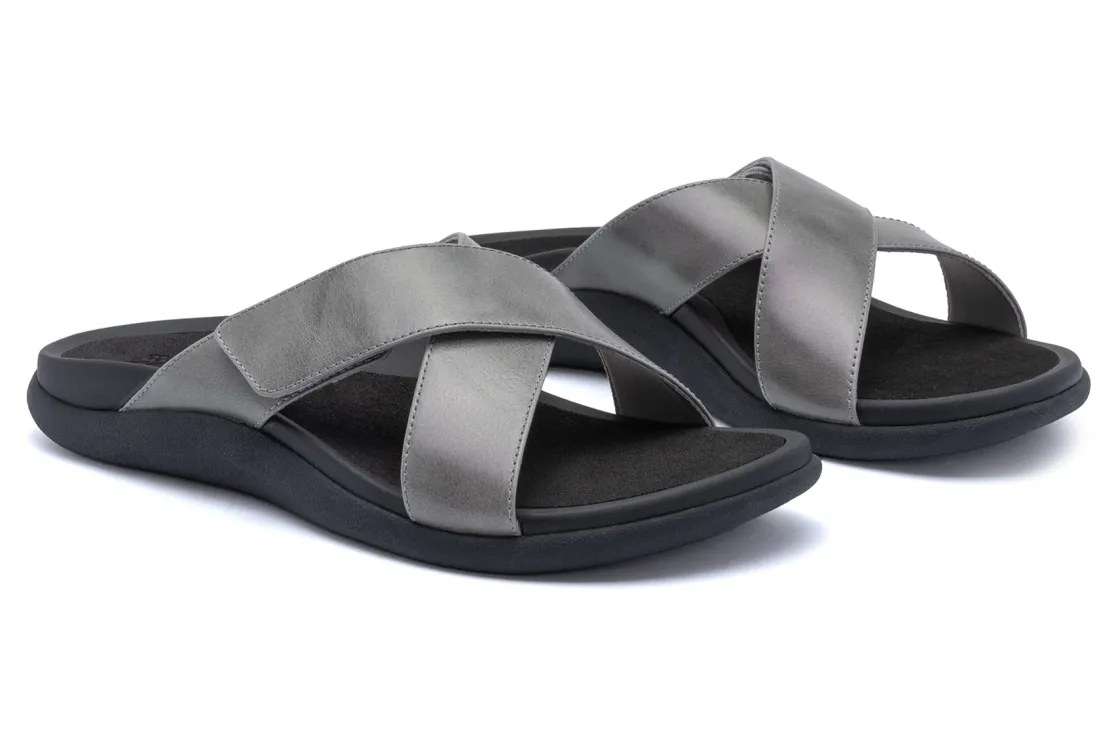 With a built-in orthotic footbed and a sturdy rubber outsole, the ABEO Laguna Slide Metatarsal sandal reduces fatigue and enhances foot support. The soft and flexible moisture-wicking lycra lining improves breathability, keeping your feet dry and cool. Pick from a wide variety of options, silver slide, beige slide, pink slide, and light denim slide.