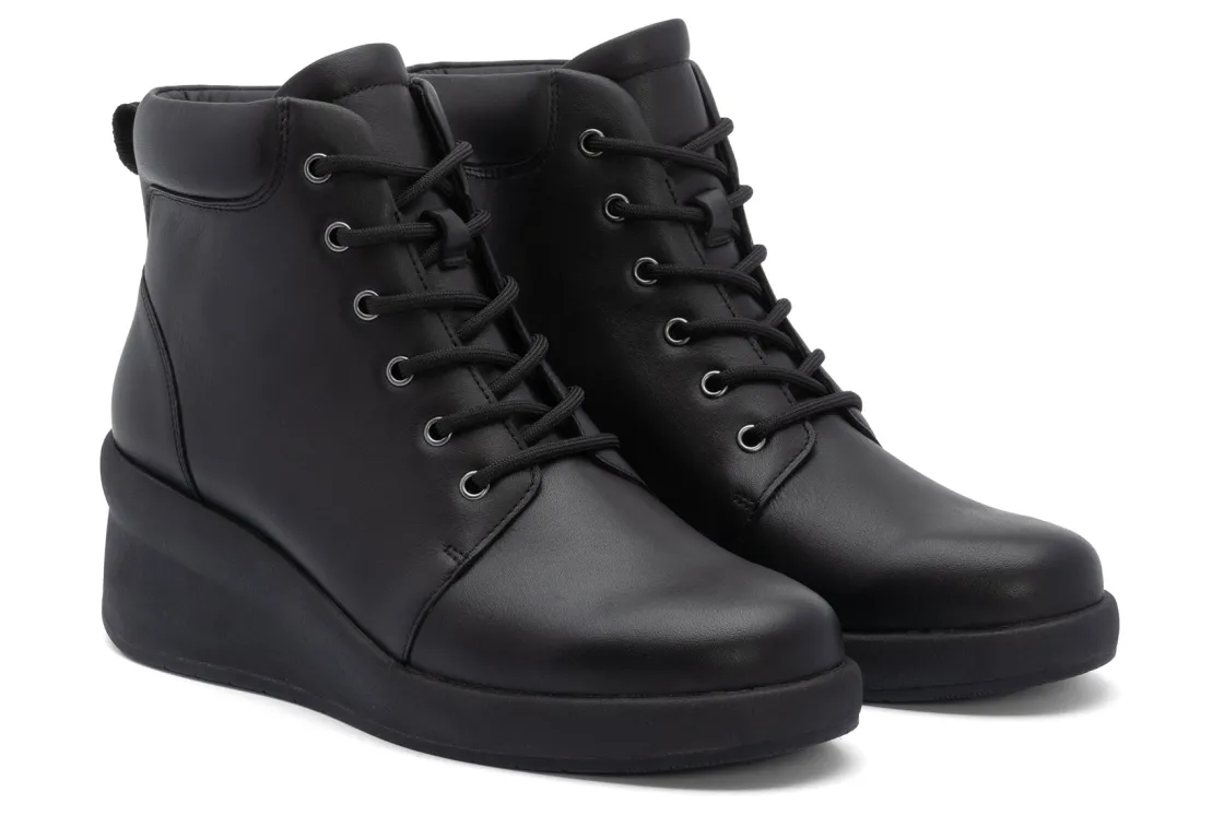 With water-resistant leather uppers and a flexible rubber outsole for added traction, the ABEO Passage Lace Up Boot is the perfect companion for your outdoor adventures. These lace up boots feature our exclusive BIOsystem® orthotic footbed, ensuring your feet are supported with each step. A low wedge heel adds a touch of sophistication that complements the rugged look of these women’s boots.