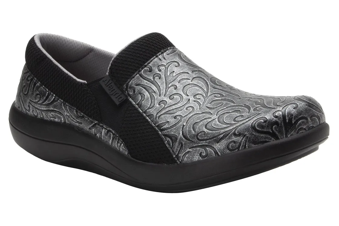 Alegria Duette is a comfortable and flexible casual shoe. These trendy slip-ons have vegan leather uppers, a removable footbed and a lightweight PU outsole. A padded collar, double elastic gores and a suede leather footbed completes these everyday shoes.