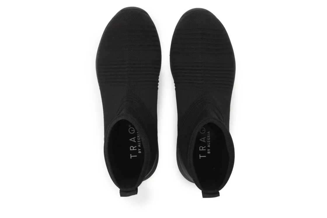 Alegria Traq Qirkie is a comfy slip-on laceless hightop. These fashionable shoes have knitted textile uppers, removable footbed and slip-resistant PU outsole. A protective heel counter, a 5-inch mid-ankle shaft height and built in pedometer will make these stylish shoes a new favorite.