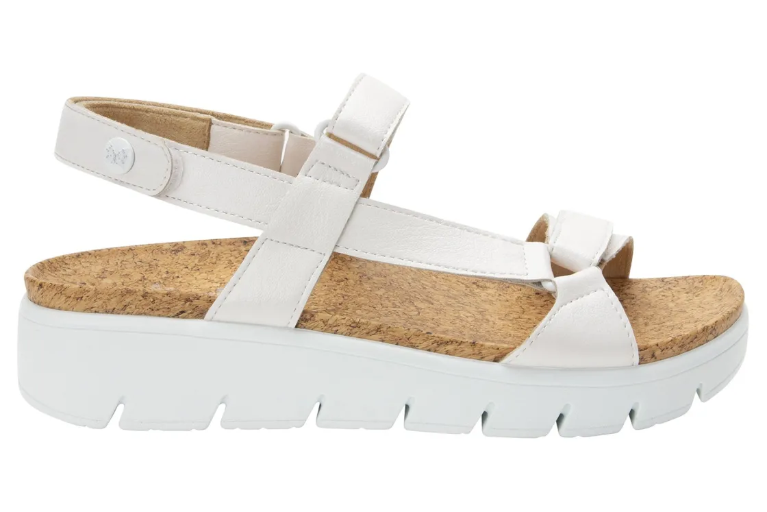 Alegria Henna is a strappy sandal with comfort features. This supportive silhouette has a vegan leather upper, molded PU insole and durable PU outsole. Three adjustable hook and loop straps, smooth synthetic lining and 1 ½ inch heel height outlines these reliable summer sandals.