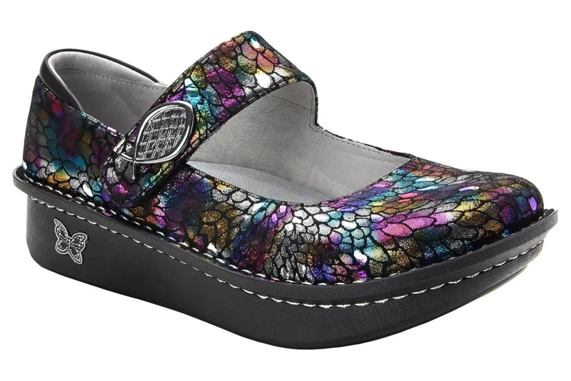 Alegria Paloma is a timeless and comfortable Mary Jane shoe. These classic women’s shoes have leather uppers, hook and loop instep strap and PU outsole. A removable footbed, padded collar, a moisture wicking insole and 1 ¾ inch heel height outlines these Mary Janes.