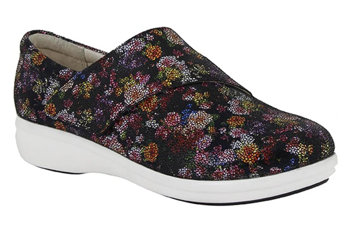 Alegria Traq Qin is a sturdy and comfortable walking shoe. Features include a leather upper and lining, cushioned footbed and a dual-density outsole. Q Chip technology tracks steps and workouts, while an adjustable hook and loop closure secures feet for all-day comfort.