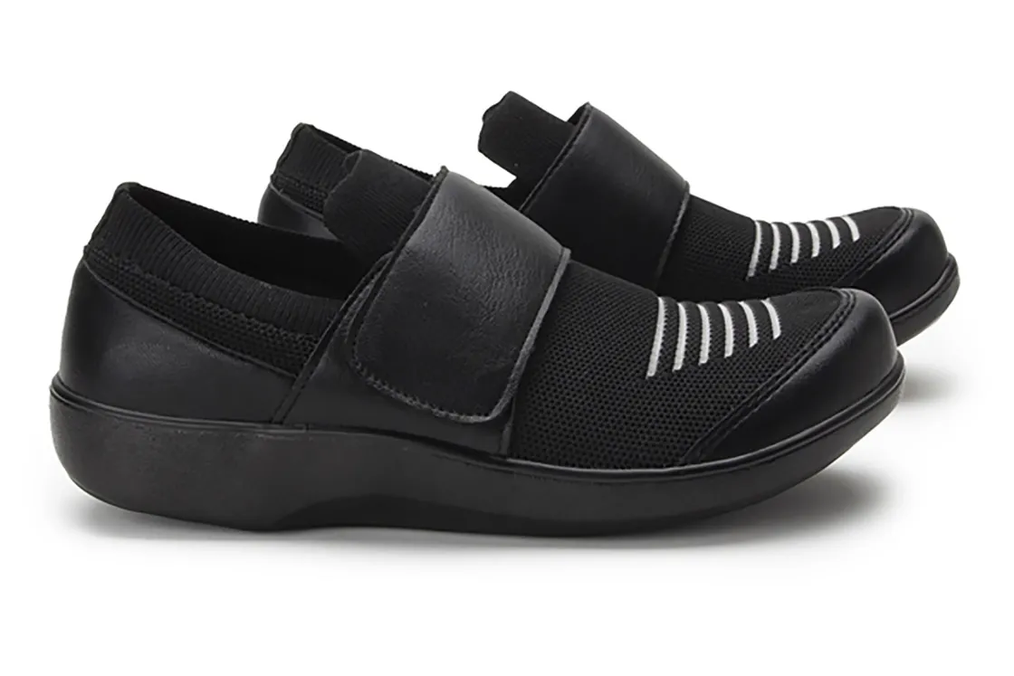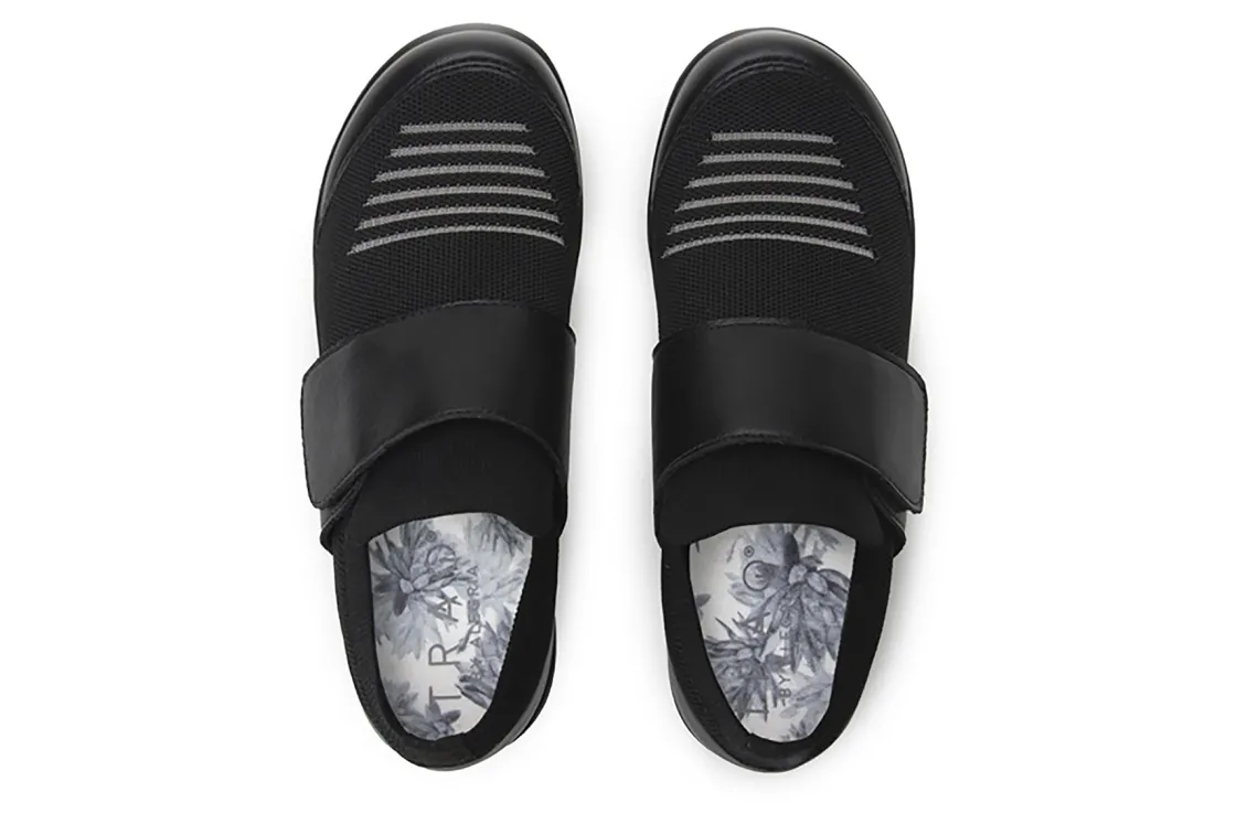 Alegria Traq Qwik is a sporty smart shoe built for comfort. These trendy sneakers have a textile fabric upper, a cushioned footbed and a durable PU outsole. An adjustable hook and loop closure, removable footbed and Q-Chip smart shoe technology will make these your new favorite workout sneakers.