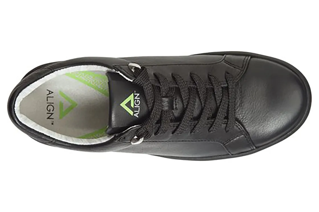 Align Harper is a sleek and durable classic shoe. A leather upper, padded collar on the upper heel and a flexible TPR rubber fusion outsole makes these sneakers. A corrective orthotic insole provides support, adjustable stretch laces add stability and a slip-resistant bottom offers traction and grip.