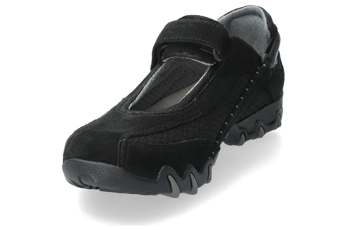 An Allrounder icon. Rise to every day’s challenges with the Allrounder by Mephisto Niro. Innovative design and legendary craftsmanship result in a shoe you’ll love for nearly any occasion. Rugged and feminine, these unique shoes pair the confident capability of a rugged hiking or trekking shoe with subtle design cues that almost subliminally evoke a classic Mary-Jane. A single adjustable strap makes for simple on-and-off, while also ensuring an exceptionally secure fit. Soft padding throughout provides unbeatable comfort as well as correct support, and combined with a grippy outsole that absorbs whatever you throw at it, you’ll have a shoe that commands attention and delivers perfection.Material: SUEDE LEATHERLining: TEXTILE LININGFastener: HOOK AND LOOP TAPEWidth: G (standard width)Heel Type: FLAT HEEL, 1.5 cmRemovable Footbed: YES