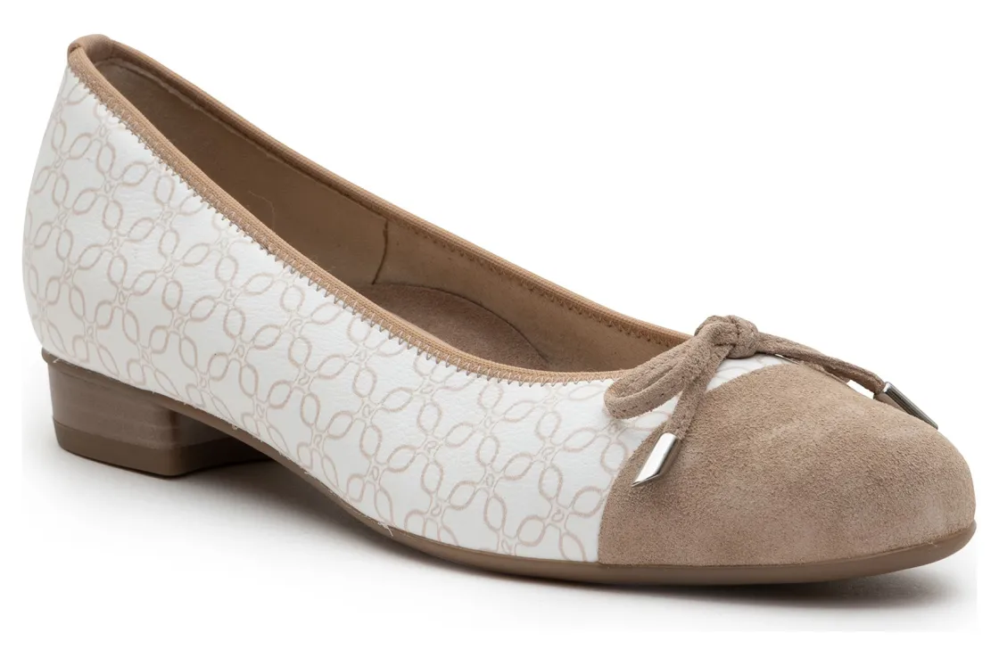 Keep it sweet and simple in this essential ballet flat – the ara Belinda. Featuring a delicate bow detail with meticulously detailed hardware. Classic contrasting materials create a fashionable cap toe on this day to evening slip on. The Belinda has an elasticized topline for a custom fit as well as added comfort.