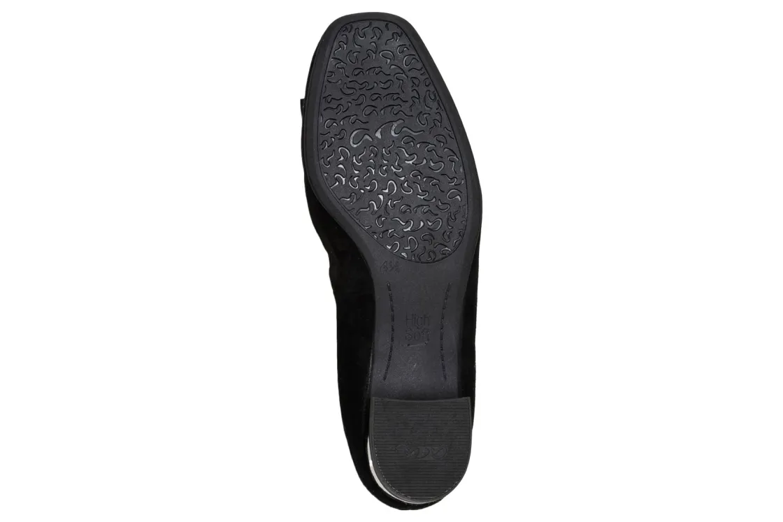 A stylish and elegant pump from ara shoes on a lower heel. The ara Garnet features an elegent bow detail and elasticized topline for comfort and a custom fit.