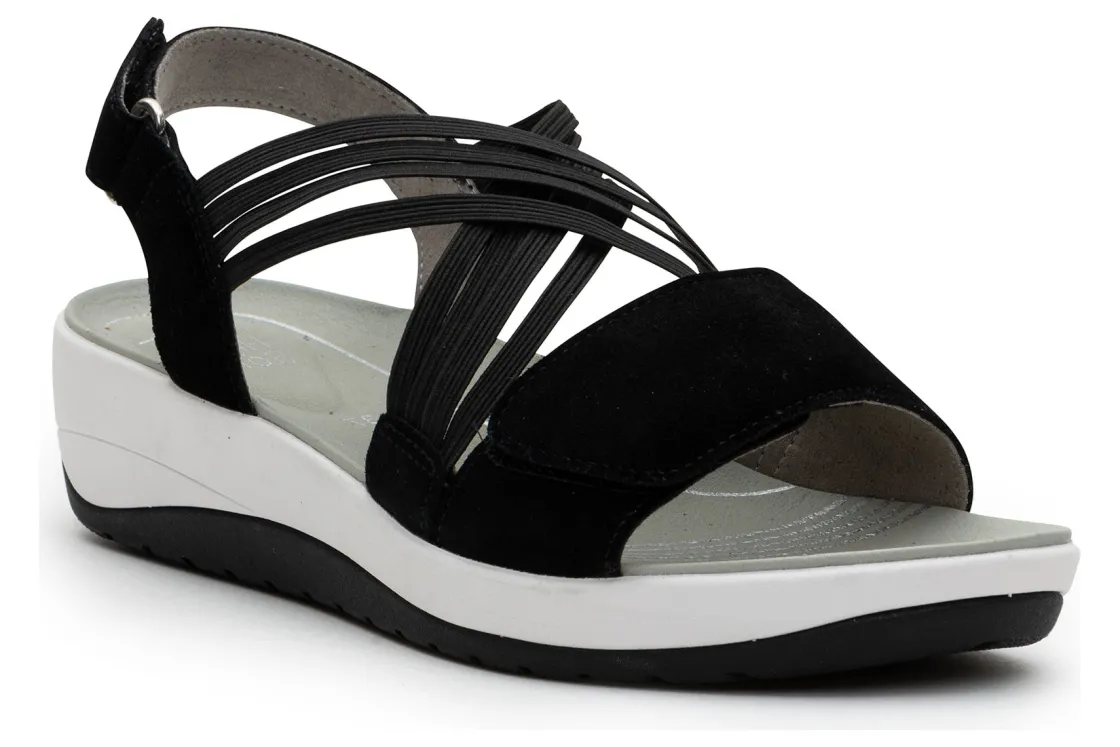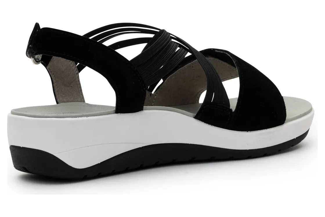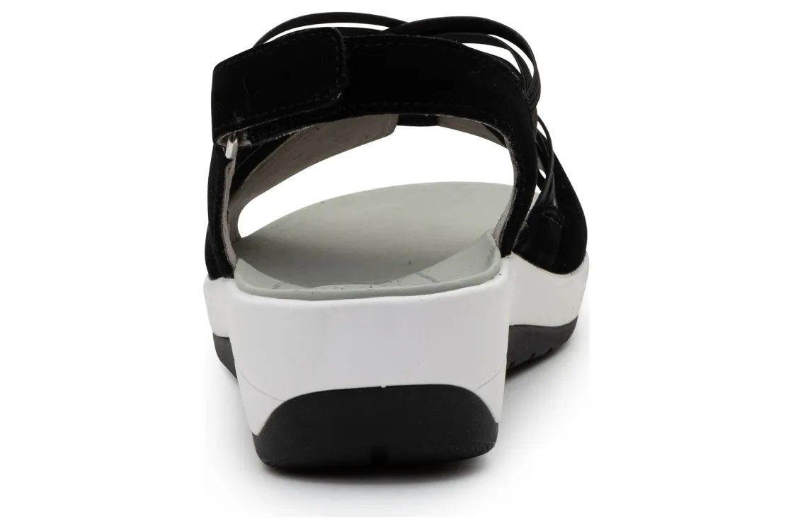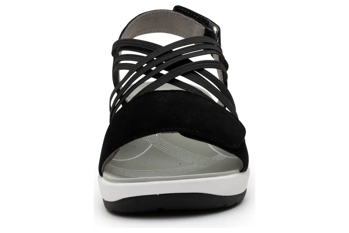 The Niles HighSoft platform sandal is a stylish and comfy style that features a decorative and functional criss-cross elastic instep for a custom fit and easy on/off. The forefoot and ankle straps are adjustable with hook & loop closures. The sporty platform outsole is not only shock absorbent and supportive, but flexible as well. Cushioning, flexibility, comfort and style, this sandal has it all!