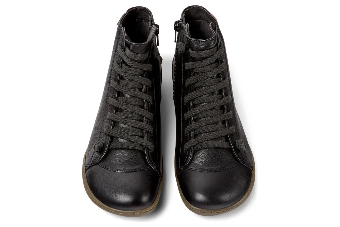 Leather women’s ankle boots with TPU outsoles (20% recycled). A Camper Icon that evolves with every season, Peu offers functional simplicity inspired by walking barefoot. It is 360-degree stitched and built with a Strobel construction technique, guaranteeing unmatched flex and durability under any conditions.