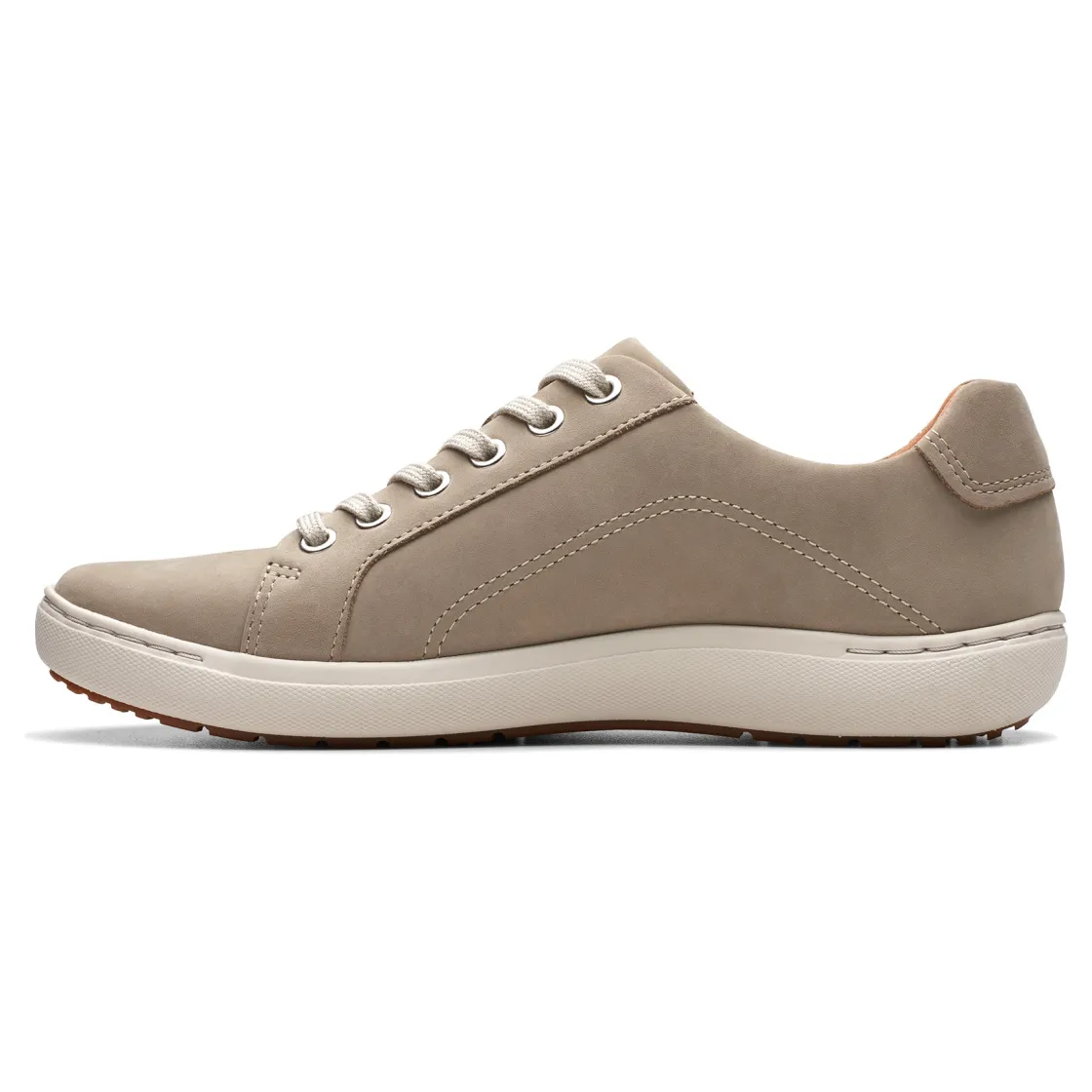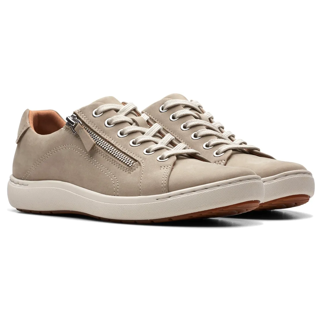 Stay light on your feet in sports-inspired sneaker Clarks Nalle Lace. Crafted from nubuck, this everyday silhouette combines casual aesthetics with Clark’s iconic craftsmanship, keeping you feeling put together on off-duty days. Comfort is key – that’s why this shoe is designed with a supportive Contour Cushion footbed and high-grip rubber sole, guaranteeing steady, supported steps on those busy days.