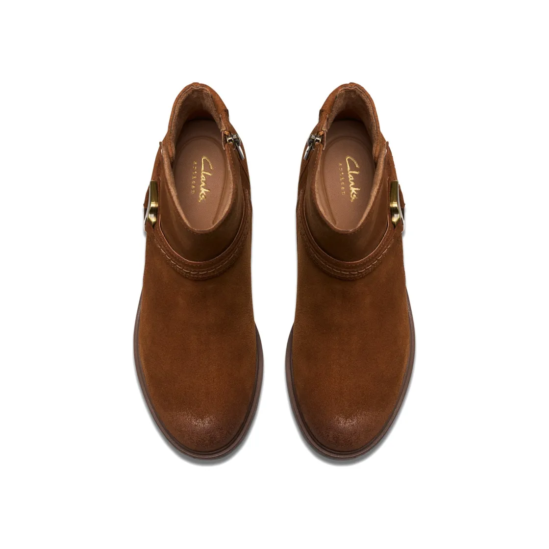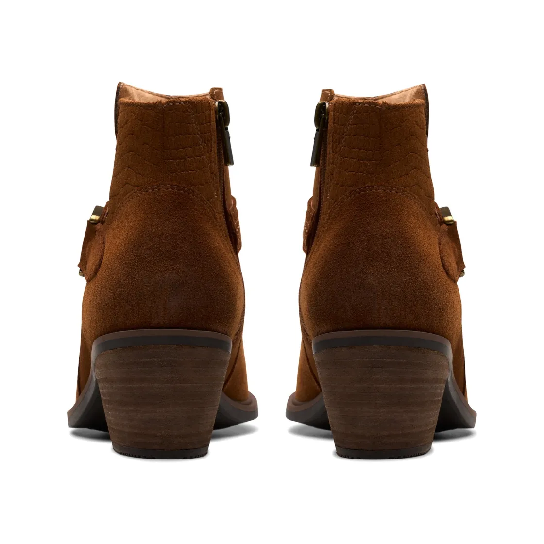 A timeless mid-heel boot with subtle cues to the western trend, the Clarks Neva Buckle carries you into the season ahead. Crafted from buttery suede or leather, it makes use of the Clarks signature Contour Cushion footbeds to deliver lasting comfort, while huggable stretch at the ankle provides a snug, custom fit. Ticking the box for on-trend too, a sleek metal buckle and classic toe shape complete its rodeo-inspired aesthetic.