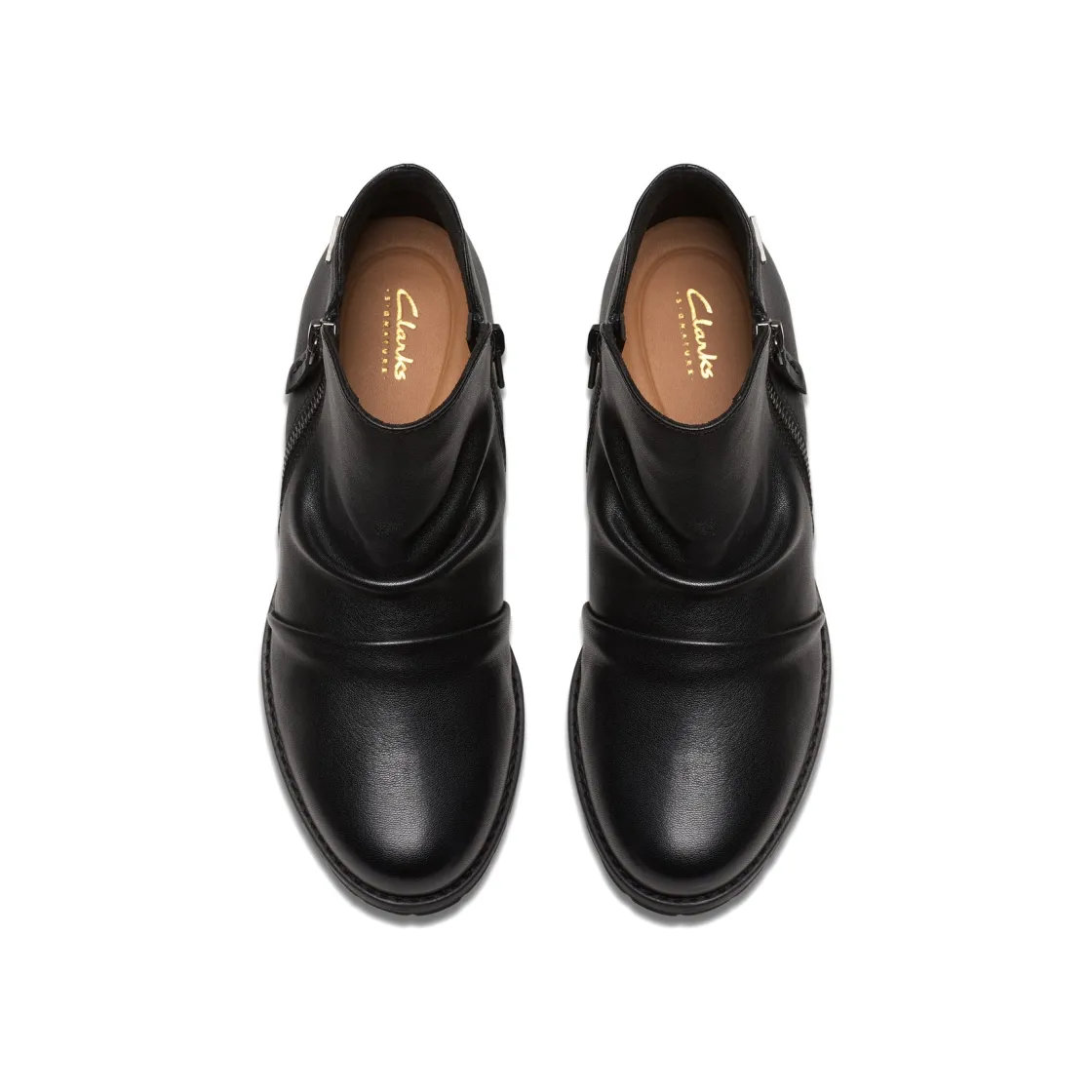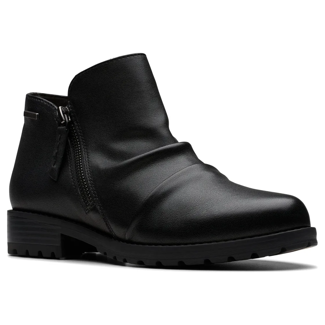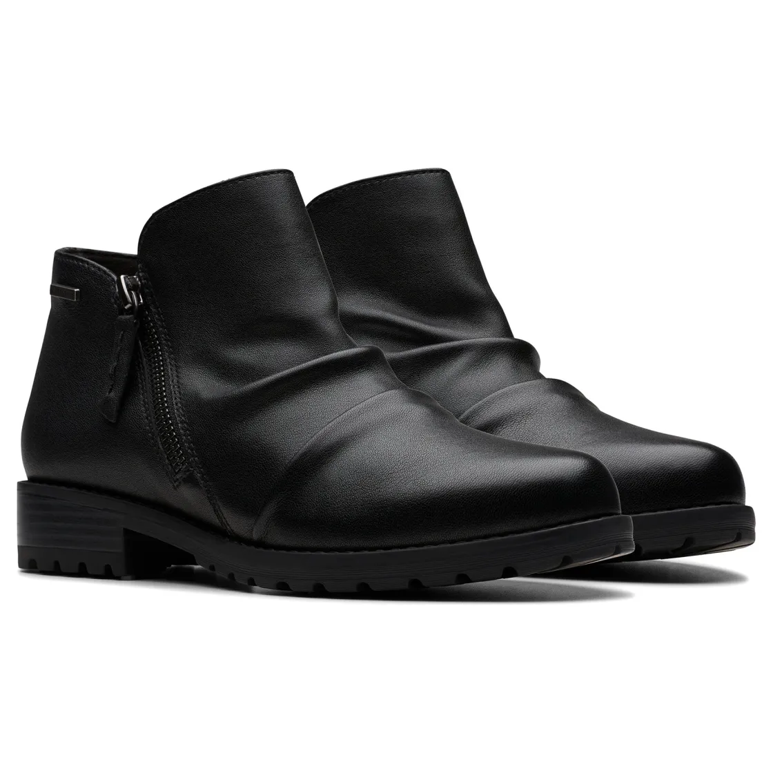Casual ankle boot Clarks Nissini Top WP is prepped for wet weather with its practical waterproof construction. Crafted in premium suedes or leathers that boast an on-trend ruched design, this zip-up silhouette makes use of a flexible lugged rubber outsole that paves the way for confident movement. It keeps your comfort a top priority too, with plenty of soft, cushioning underfoot support. The ultimate balance of laid-back aesthetics and all-weather comfort – consider your weekend style levelled-up!