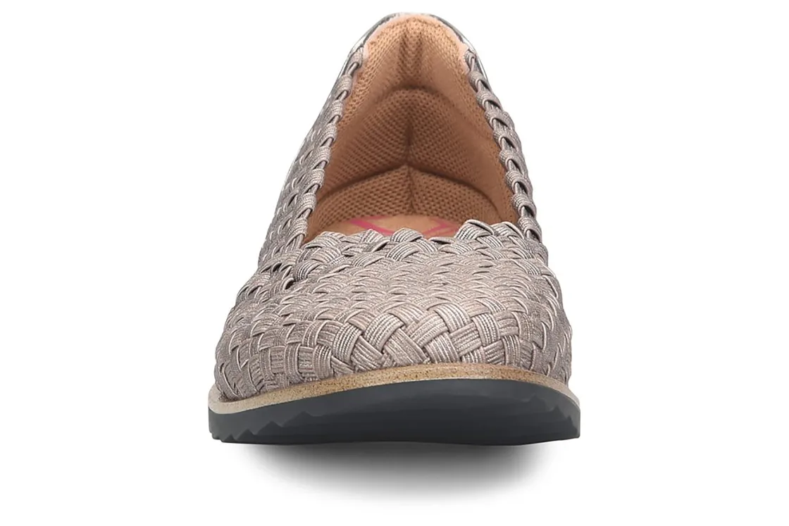 Comfortiva Riya is a chic and comfy flat for any occasion. These versatile flat shoes have basketweave elastic uppers, memory foam cushioning and TPR outsole. A microfiber lining, lightweight construction and ½ inch heel height makes these flats the perfect summer shoe.