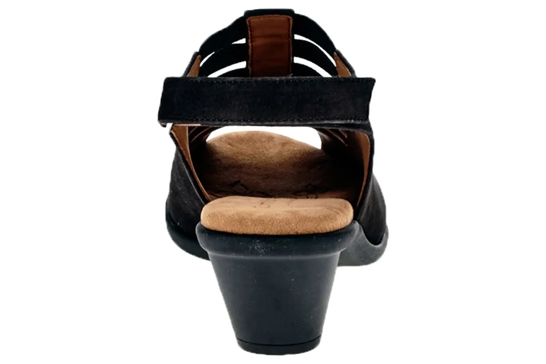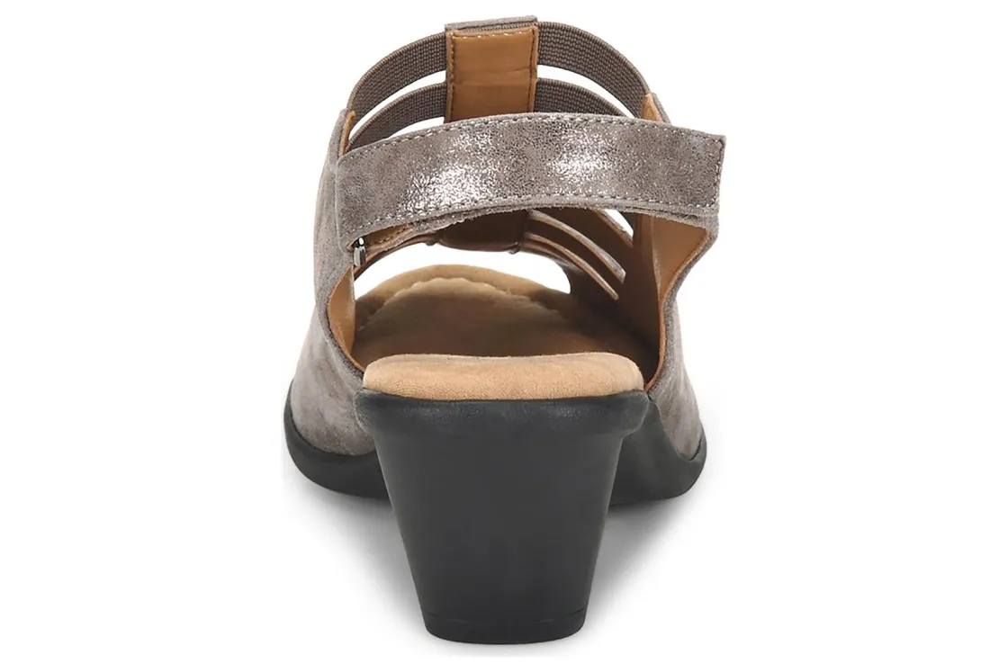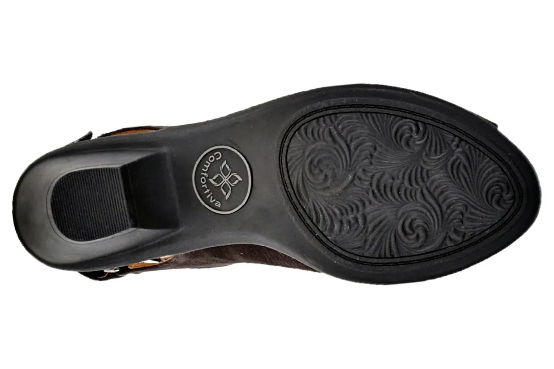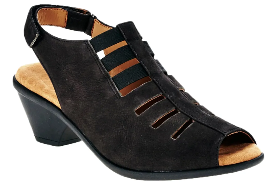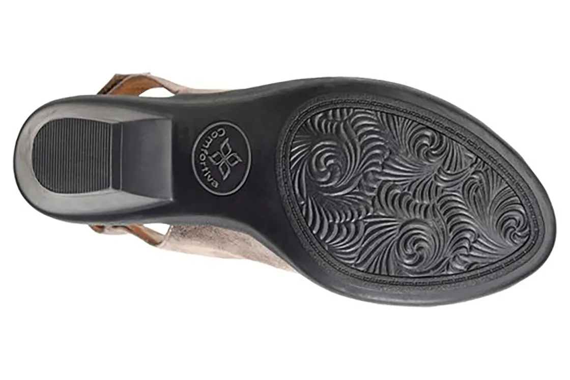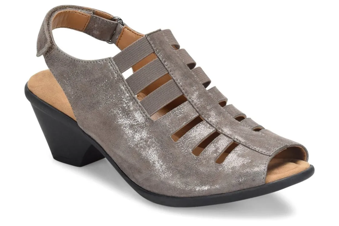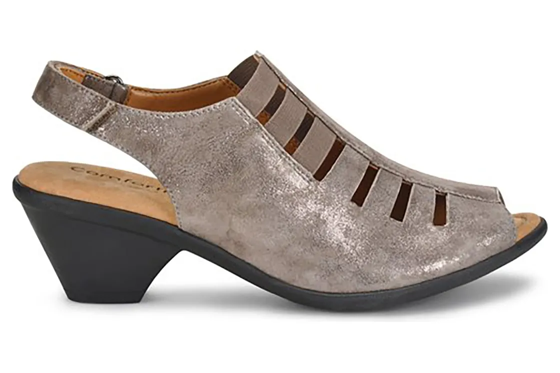Comfortiva Faye is a strappy sandal built for comfort. Enjoy leather uppers, an adjustable slingback strap, flexible gore and memory foam cushioned footbed. Other features include a breathable synthetic lining, 2-inch heel height and a slip-resistant TPR outsole.