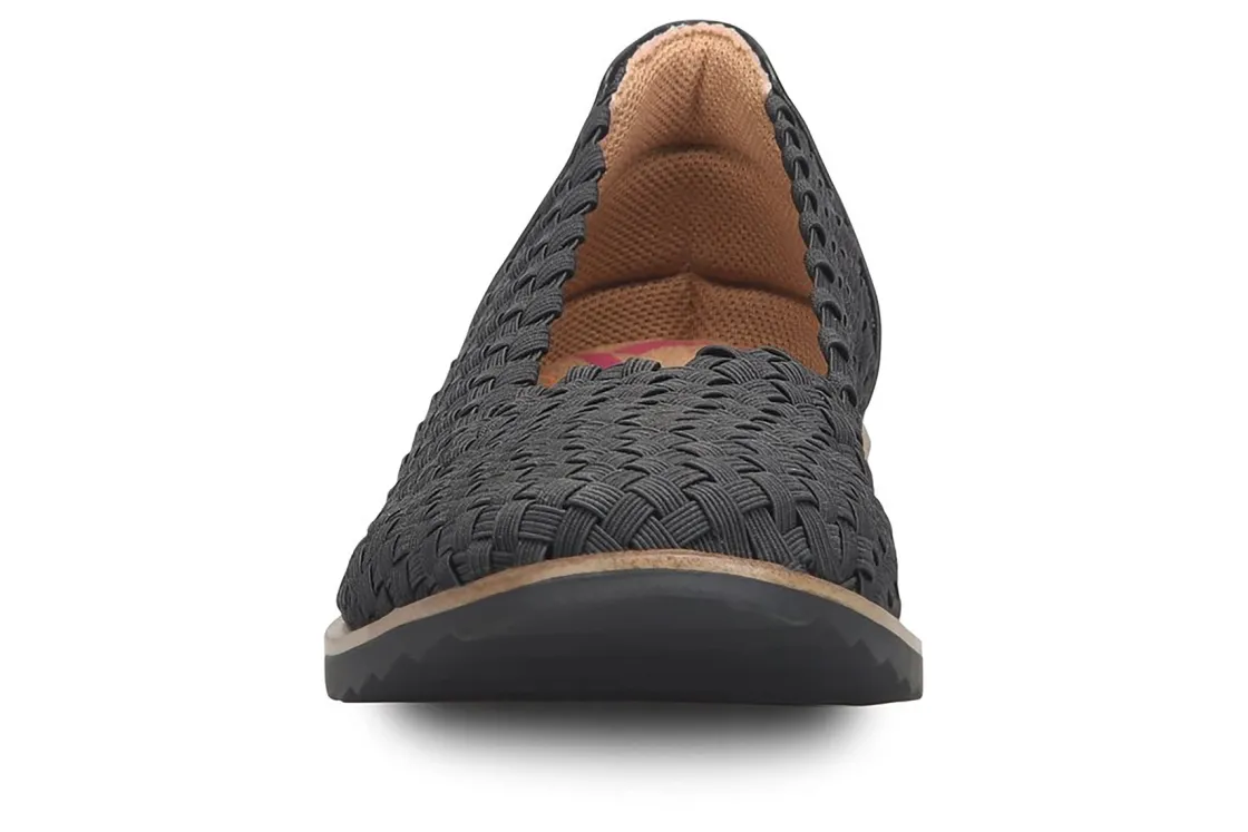 Comfortiva Riya is a chic and comfy flat for any occasion. These versatile flat shoes have basketweave elastic uppers, memory foam cushioning and TPR outsole. A microfiber lining, lightweight construction and ½ inch heel height makes these flats the perfect summer shoe.