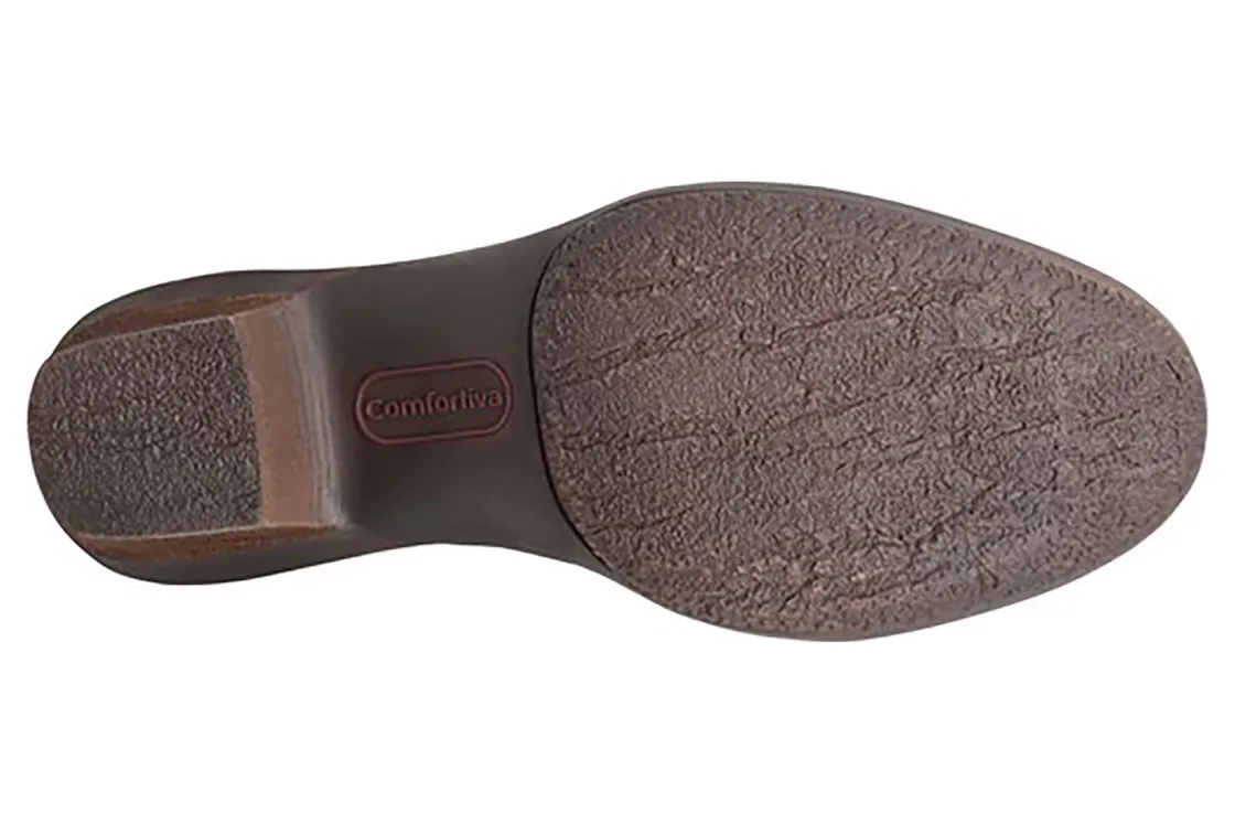 Comfortiva Brianne is a warm and cozy boot for cold weather days. These versatile boots have leather or nubuck uppers, memory foam footbeds and TPR outsoles. A ribbed sweater knit cuff, inside zipper, heel tab and 2-inch heel height will make these boots a wintertime favorite.