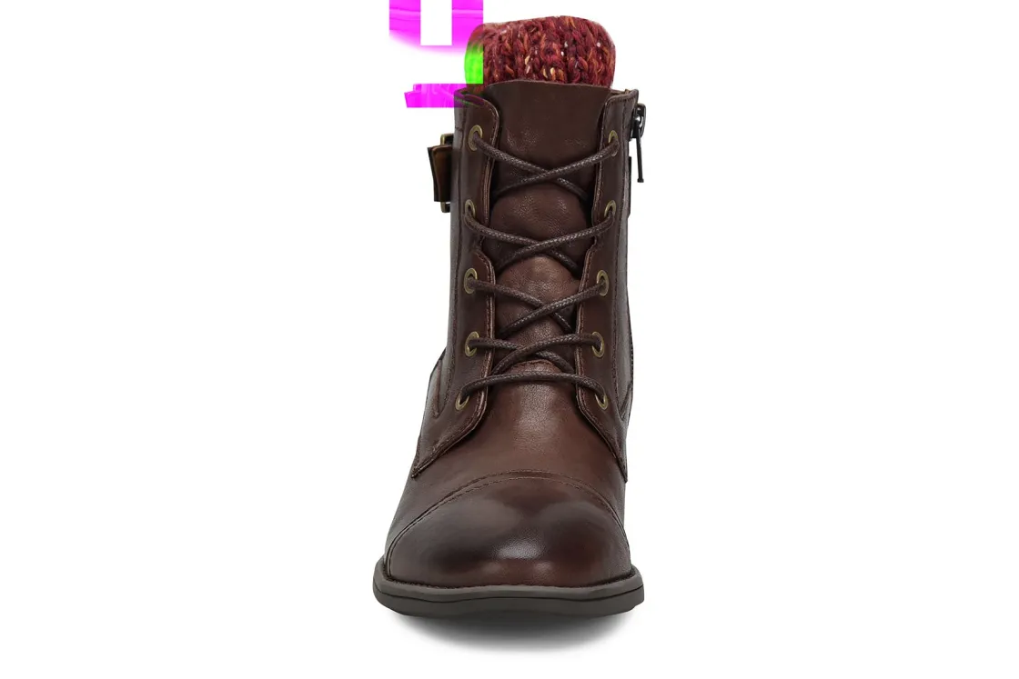 Comfortiva Cordelia is a warm and cozy women’s boot. Features include Italian leather uppers, memory foam footbeds, sweater knit collar and TPR outsole. Your feet will love the soft microfiber linings, buckle detail, lace-up closure, 1 ½ inch heel height and 6-inch shaft height.