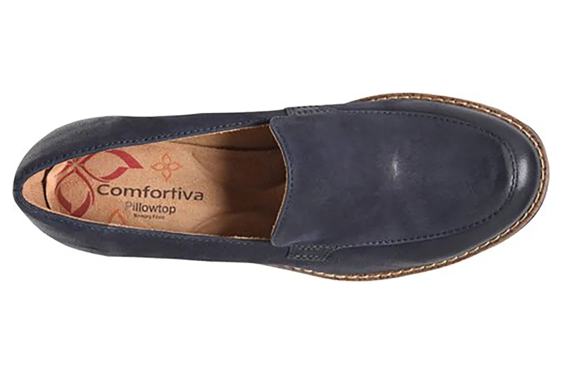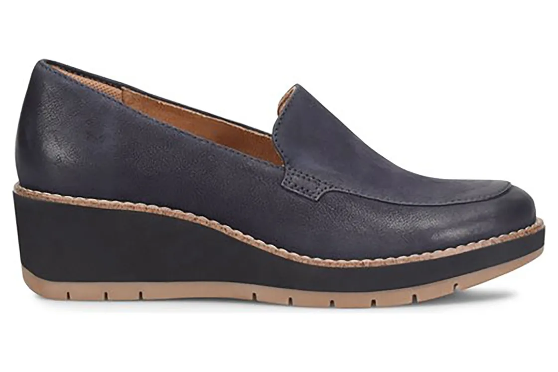 Comfortiva Farland is a stylish and versatile wedge loafer. Prominent features include leather uppers, a memory foam footbed and a lightweight EVA outsole. A padded heel collar, stretch microfiber lining and a 2 inch wedge heel height helps these loafers stand out.