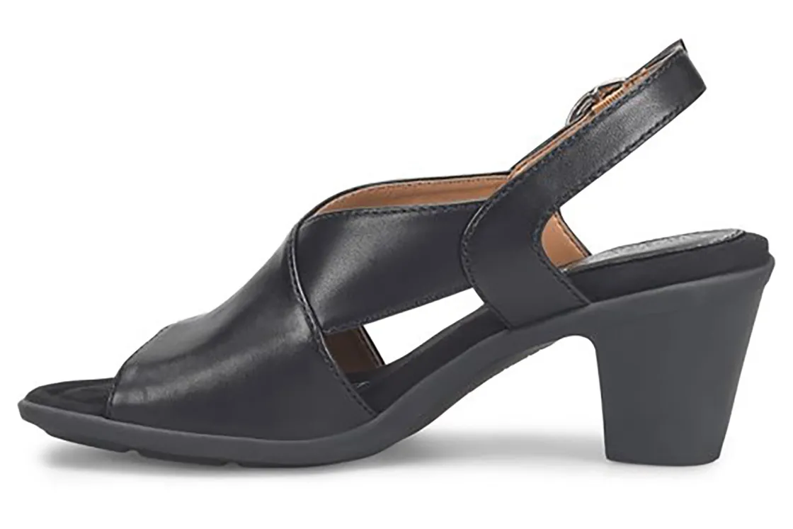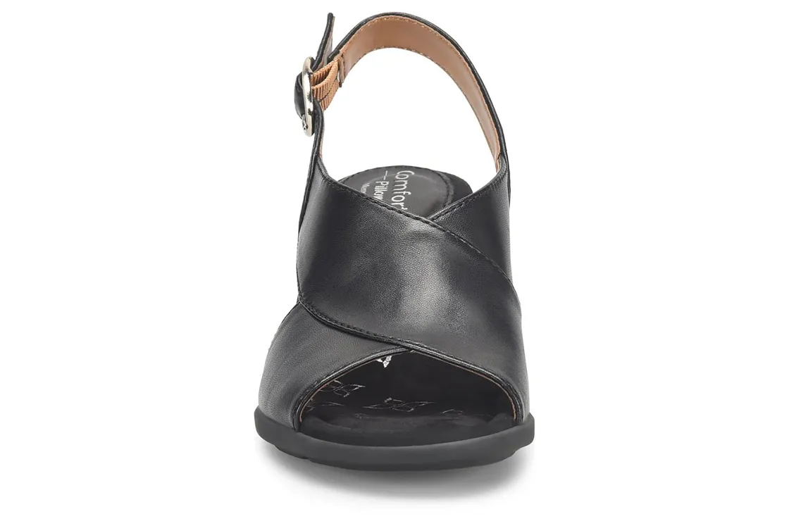 Comfortiva Katara is a sleek slingback dress sandal. Leather uppers, adjustable buckle closure, memory foam footbed and TPR outsole completes these sandals. A round toe design, synthetic lining and a heel height of 2 ½ inches will make these your new favorite slingbacks for special occasions.