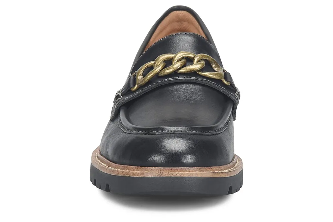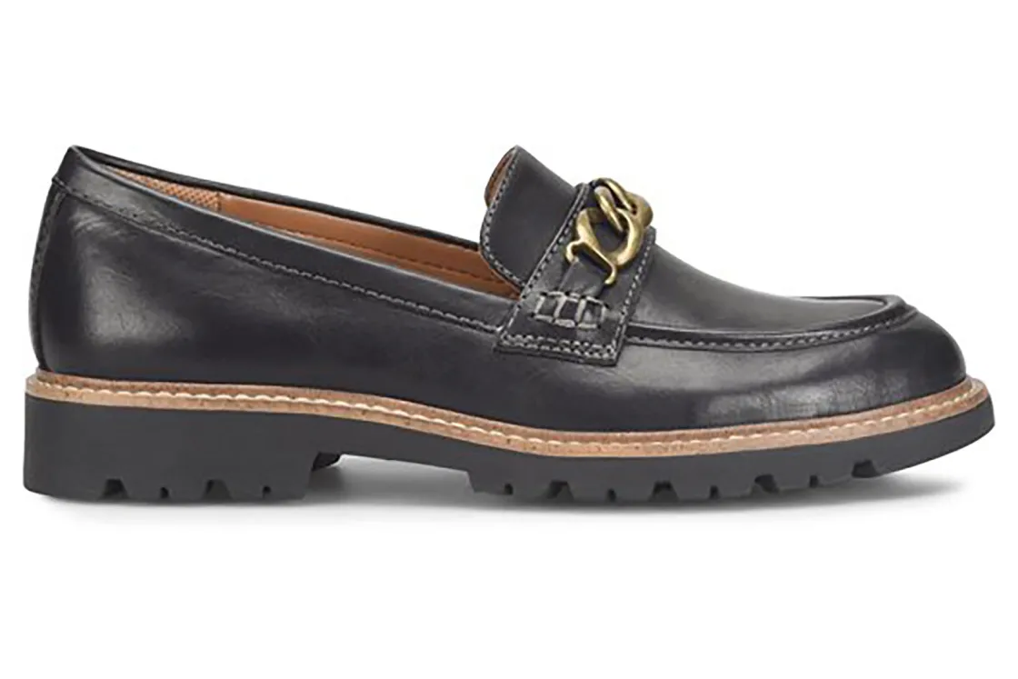 Comfortiva Linz is a sleek and stylish women’s loafer. These versatile dress shoes have leather uppers, a molded removable footbed and a lugged EVA outsole. A chain link ornament, padded heel collar, a stretch microfiber footbed lining and a 1-inch heel height sets these loafers apart from the competition.