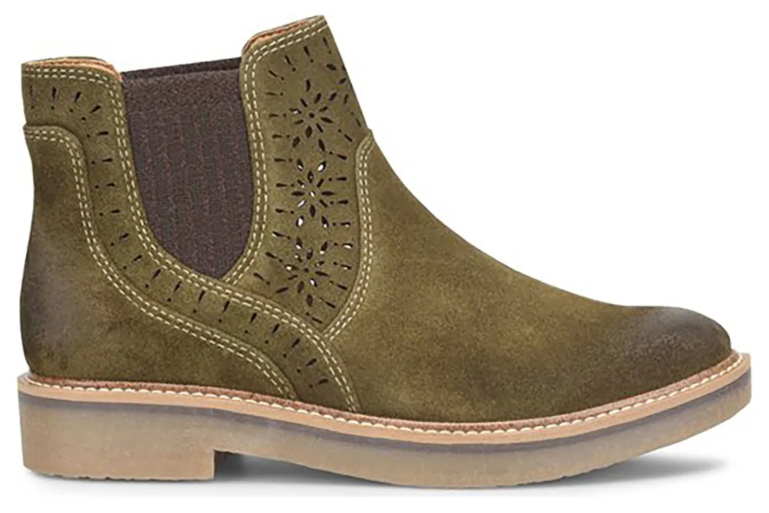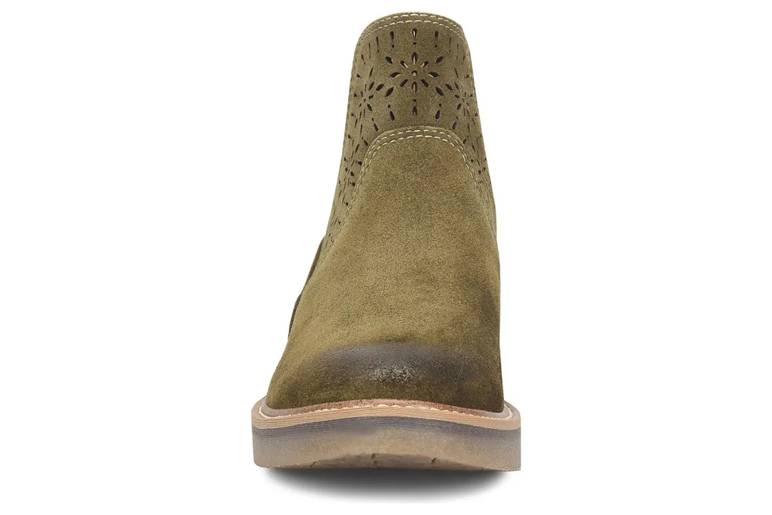 A charming Italian suede bootie with pretty artisan floral laser cut details you’ll love. Thanks to cozy stretch knit panels on the side, the Raya is a breeze to slip on and off, too.