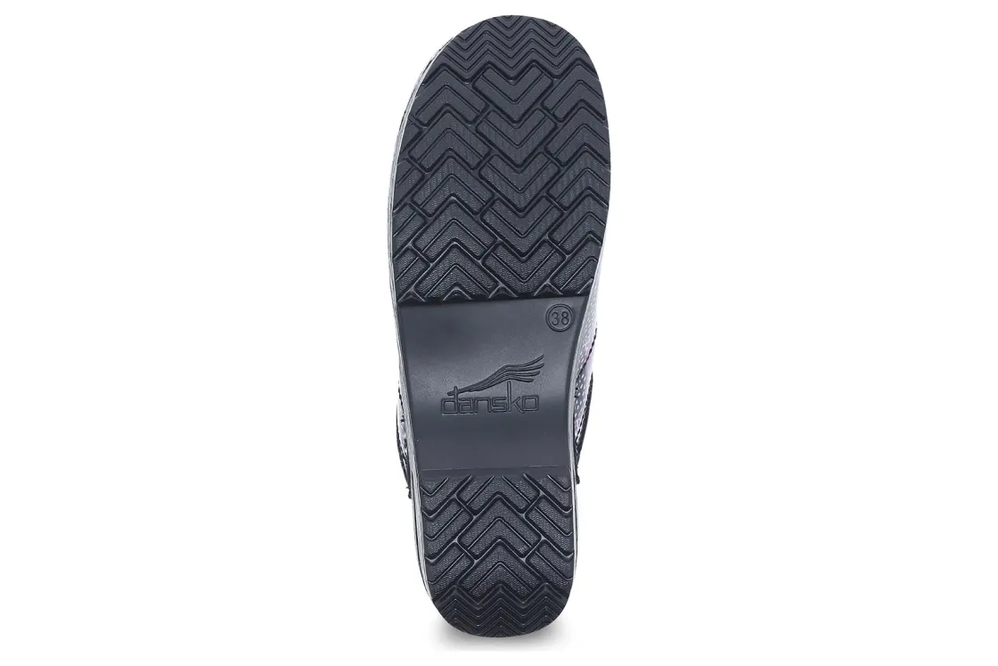 Hand-selected metallic leathers* add a bit of sparkle to the classic Professional clog so you can show your shine. It features a roomy reinforced toe box for protection and comfort. The contoured footbed adds support to the comfort features like a padded instep collar to feel good with virtually any foot. We set ourselves apart with a protective heel counter that allows the heel to move up and down freely while providing lateral stability, and the anti-fatigue rocker bottom, which is built to keep you moving forward.
