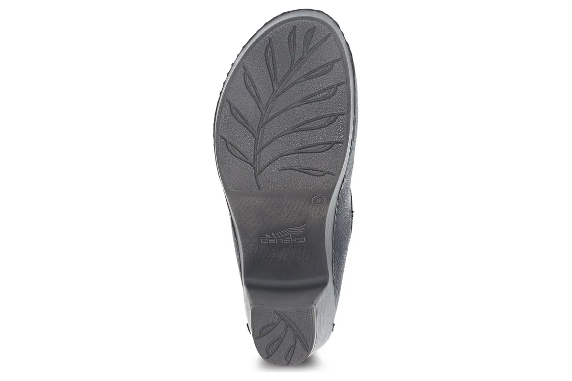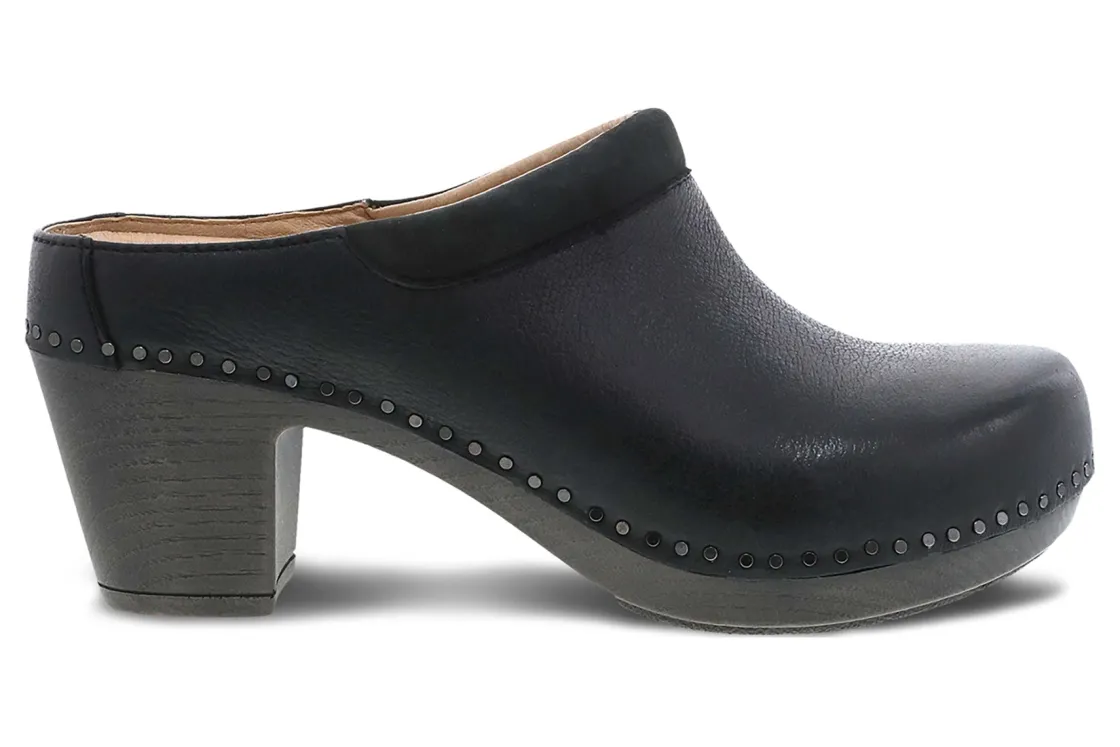 Dansko Sammy is a mule clog with a block heel. Features include a nailhead trim detail and nubuck uppers, along with our signature stapled construction. A leather covered, removable EVA footbed with Dansko Natural arch technology offers comfort and support, while the lightweight PU outsole provides long-lasting wear.