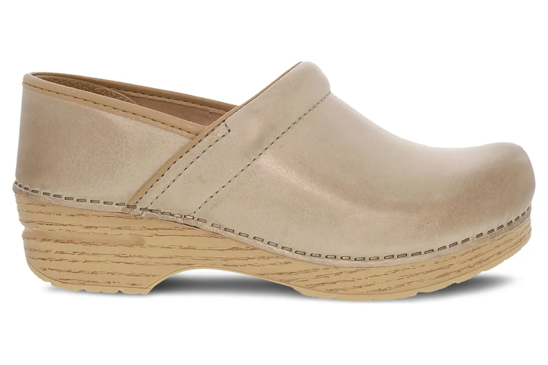 Hand-selected metallic leathers* add a bit of sparkle to the classic Professional clog so you can show your shine. It features a roomy reinforced toe box for protection and comfort. The contoured footbed adds support to the comfort features like a padded instep collar to feel good with virtually any foot. We set ourselves apart with a protective heel counter that allows the heel to move up and down freely while providing lateral stability, and the anti-fatigue rocker bottom, which is built to keep you moving forward.