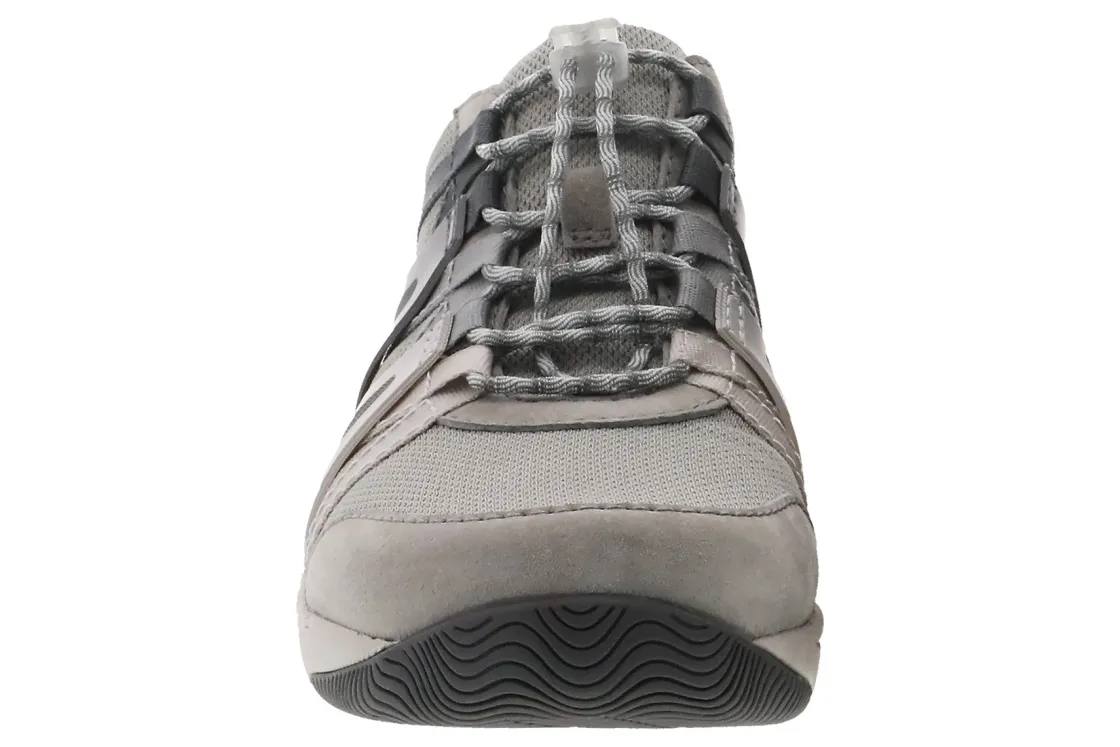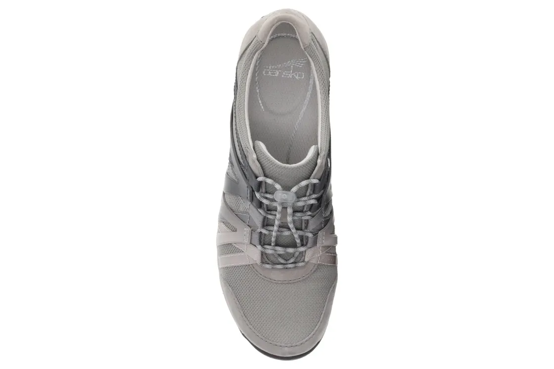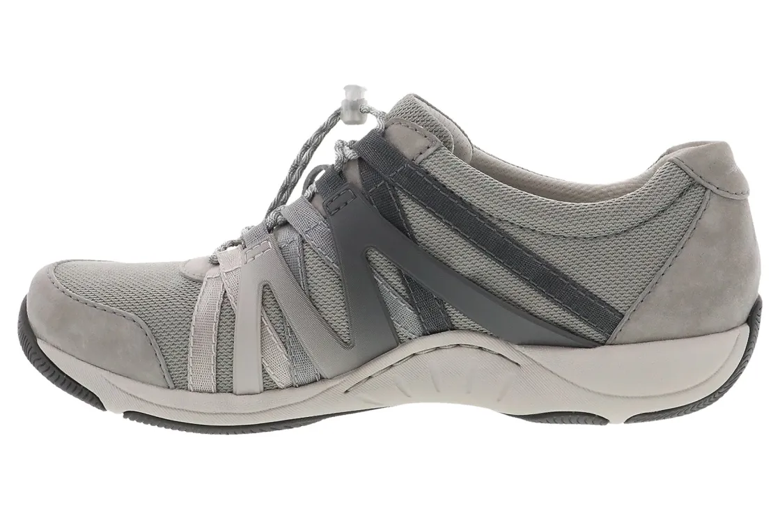 Dansko Henriette is a sporty and sleek comfort sneaker. These active shoes feature a suede and recycled nylon upper, removable EVA footbed and rubber outsole. Adjustable bungee laces, a cooling sock lining and strobel construction provides support and flexibility.