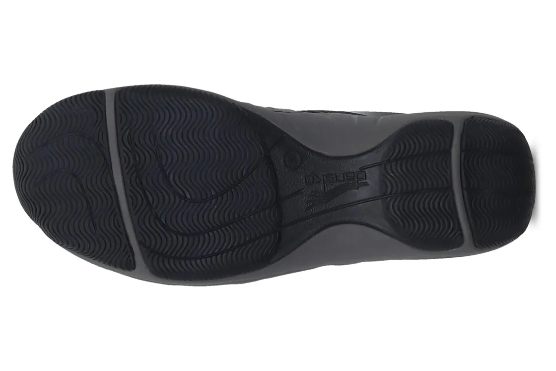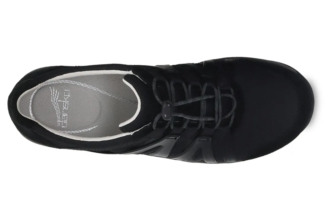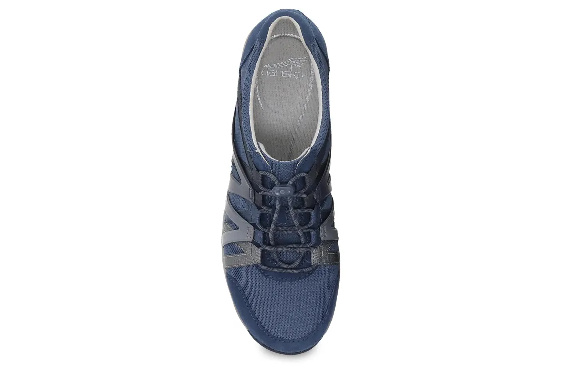 Dansko Henriette is a sporty and sleek comfort sneaker. These active shoes feature a suede and recycled nylon upper, removable EVA footbed and rubber outsole. Adjustable bungee laces, a cooling sock lining and strobel construction provides support and flexibility.