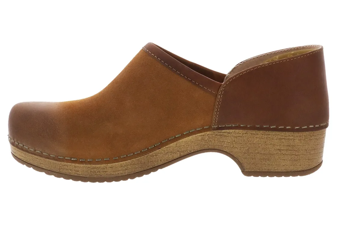 Dansko Brenna is a comfortable and trendy slip-on clog. You’ll love the nubuck leather uppers treated with 3M Scotchgard and EVA footbed with memory foam. Our patented stapled construction, odor controlled lining and EVA outsole will make these clogs an everyday favorite.