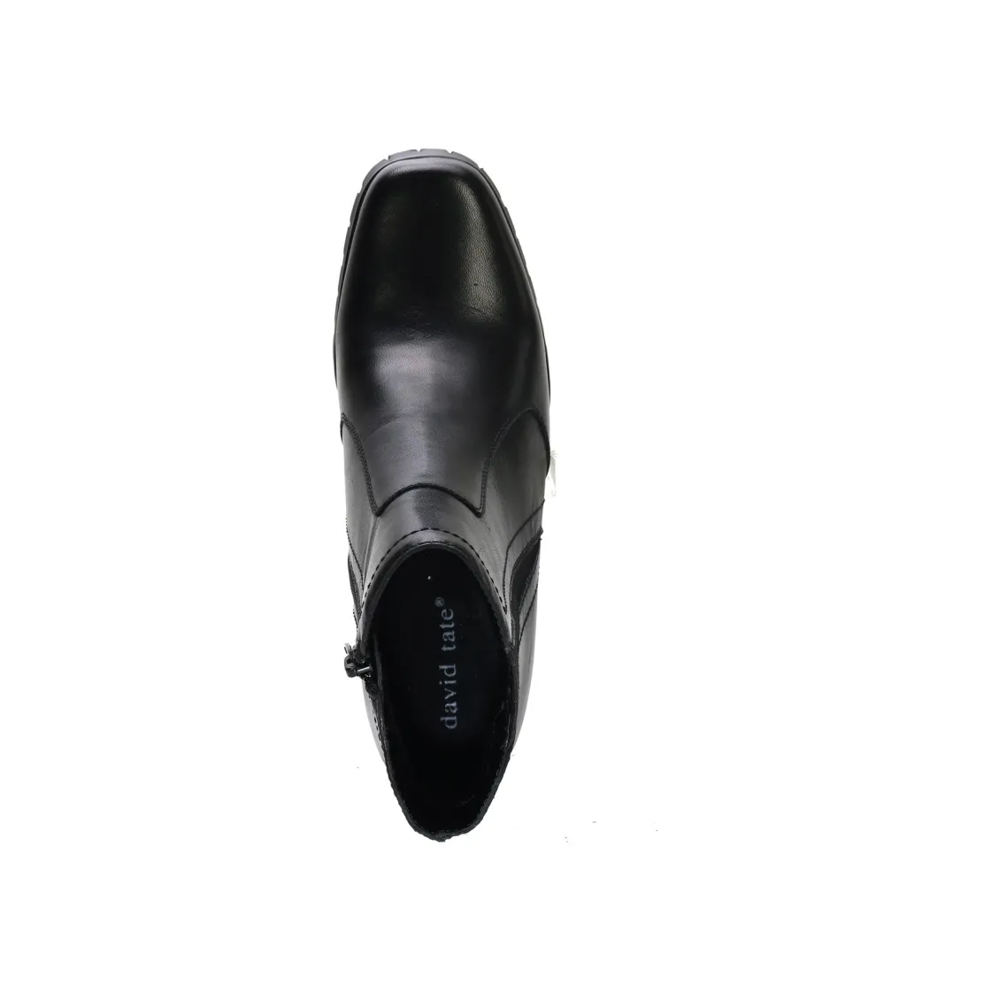 The David Tate® Energy ankle boot is a stylish and modern choice. It features a stacked heel, a square toe, an elastic side panel, and an inside zipper for easy wear. In addition, it boasts a mini lug rubber outsole, adding a touch of both style and functionality.